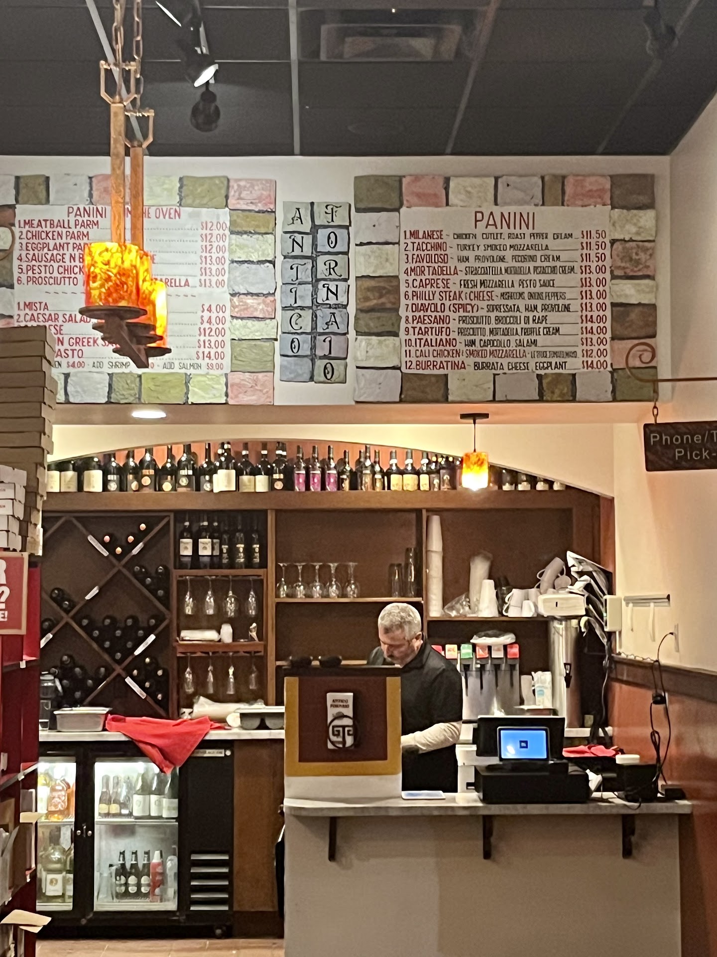 A friend made a reservation for the 4 of us, happy she did as the restaurant was busy. Upon entering, I noticed the plastic red and white checkered tablecloths which was a slight turnoff as I was expecting a “fancier” vibe I guess but had cloth napkins. We were greeted immediately by our server Bryan B. who constantly checked in, had nice suggestions and knowledgeable about menu. We took our time catching up and leisurely eating, he continued to check in w/o getting annoyed as some servers do if you aren’t rushing, appreciate that. An Italian beer, very similar to a Peroni, a house red wine and club soda were ordered. I do wish the wine menu was more appealing to a wine snob like myself, I left 1/2 glass behind(which rarely happens). The food is delicious! We started w/ the sausage and broccoli rabe appetizer which was sautéed in a zesty garlic EVOO, so good! We also ordered the Cortolona pizza which had a gooey cheese pull w/o being greasy, light and deliciously cooked in wood oven. The best Napoli pizza imo. The lightly sautéed eggplant, zucchini and mushrooms were slightly al dente, perfect for this pizza. My husband ordered the carne trio pizza w/ crisp pancetta, salami and Italian sausage, very good. Our friend had the meatball Parmesan panini and said it was delicious w/ their in house made fresh bread, smothered in mozzarella and just enough sauce. On side, an order of perfectly crisp fries yet still creamy inside seasoned w/ salt. Lastly, we shared one piece of dessert, creamy, rich yet light tiramisu. We will definitely stop...
