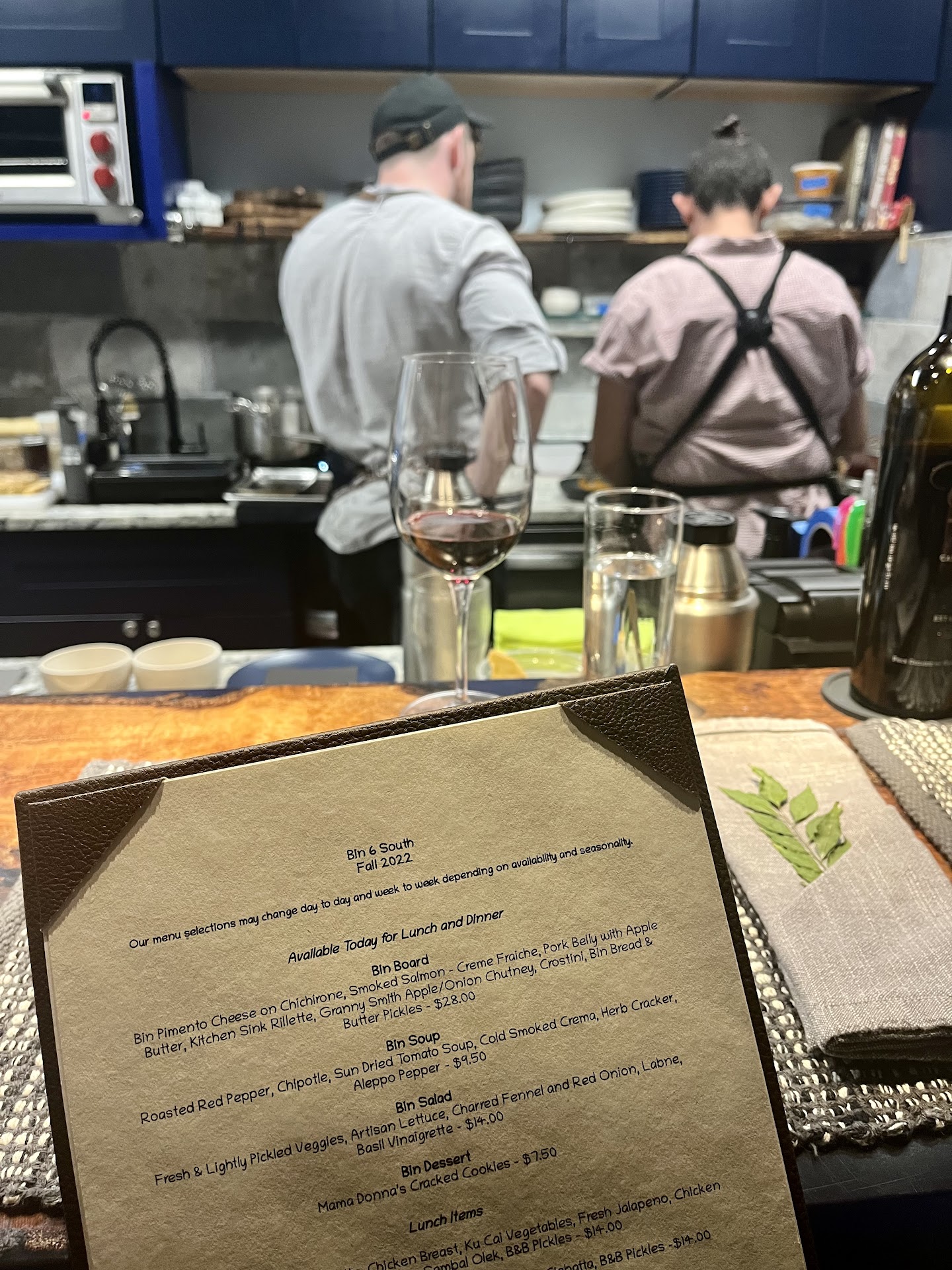 Because that’s the thing at Bin 6 South, the menu changes! And there are only 12 seats in the restaurant. Six at the common table and six at the bar overlooking the tiny yet warm and functional kitchen. You never know what’s going to happen, who you’ll meet, or what you’ll eat but I guarantee you’ll leave with a full tummy and a...