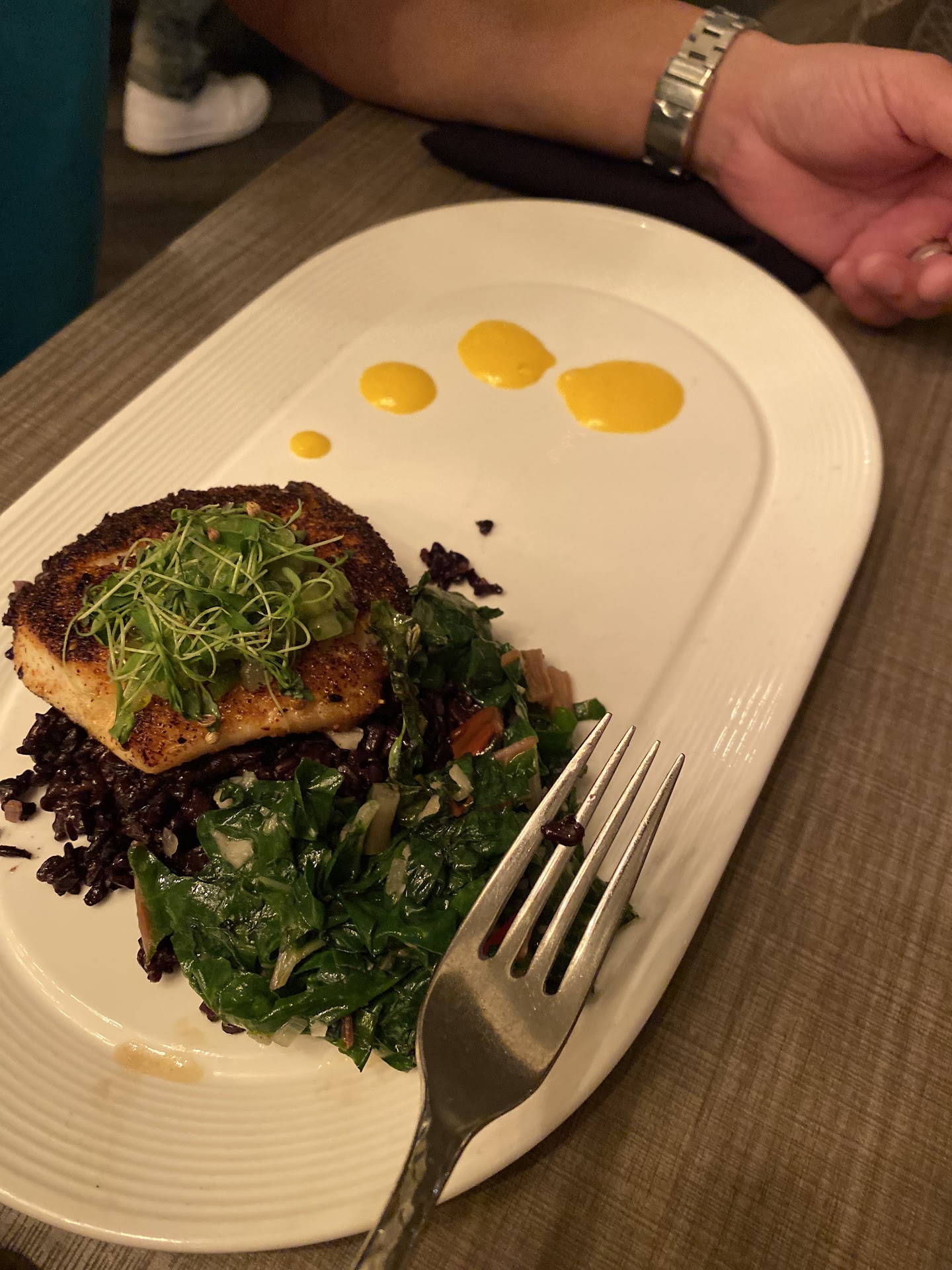 food was what we would call good, not great. Particularly for the high price of entrees, plus having to spend an additional $12 for a side dish of vegetables so that the entree didn’t look awkward by itself.