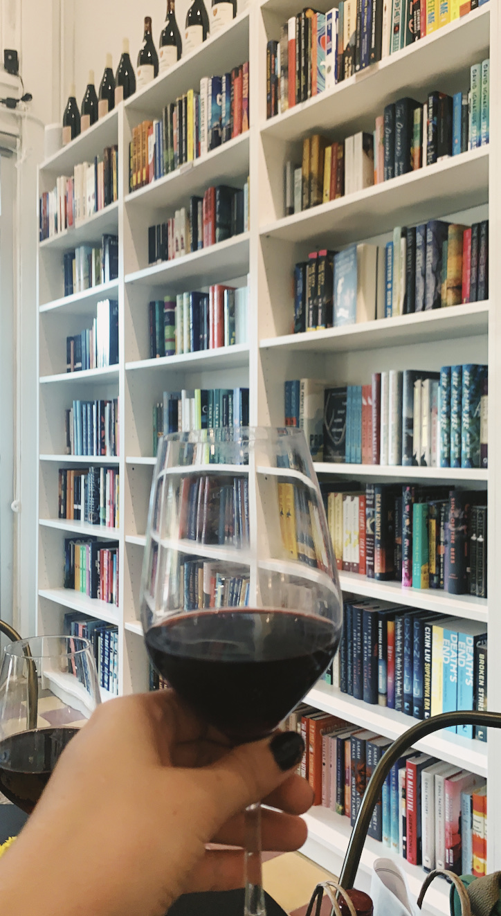 Ā Ā Ā Read moreI'm in love! This place has been on my list for a while now, and I finally got to go today with my bestie. It was a little busy when we got there, but that's wasn't an issue in any way. I just went on to browse wine choices with a specific one in mind. They didn't have it, but I was quickly assisted by one of the employees who gave recommendations on similar wines. The wine she recommended was so spot on it that it even tasted better than the Dornfelder I originally was looking for. They have a very good selection of books, which I was super excited about. Dominic was a pleasure to speak with and had several recommendations on books to read. I bought one and haven't been able to put it down. Overall, I highly recommend this place to book and wine...