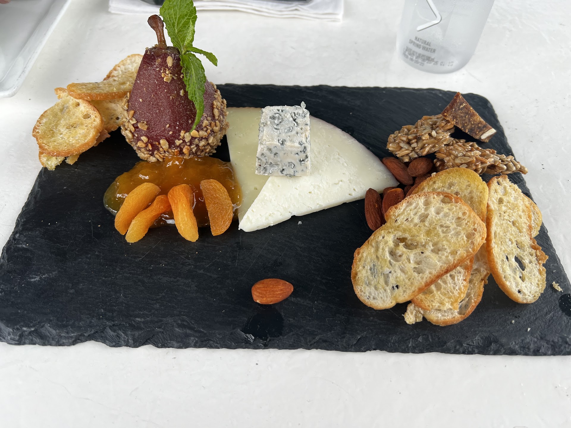 The cheese platter was much more bang for the buck. There were a couple wedges of a couple of cheeses. The poached pear was brilliant. I wish there was more fig jam, though, More jams or more filler in general would have been appreciated on either platter.