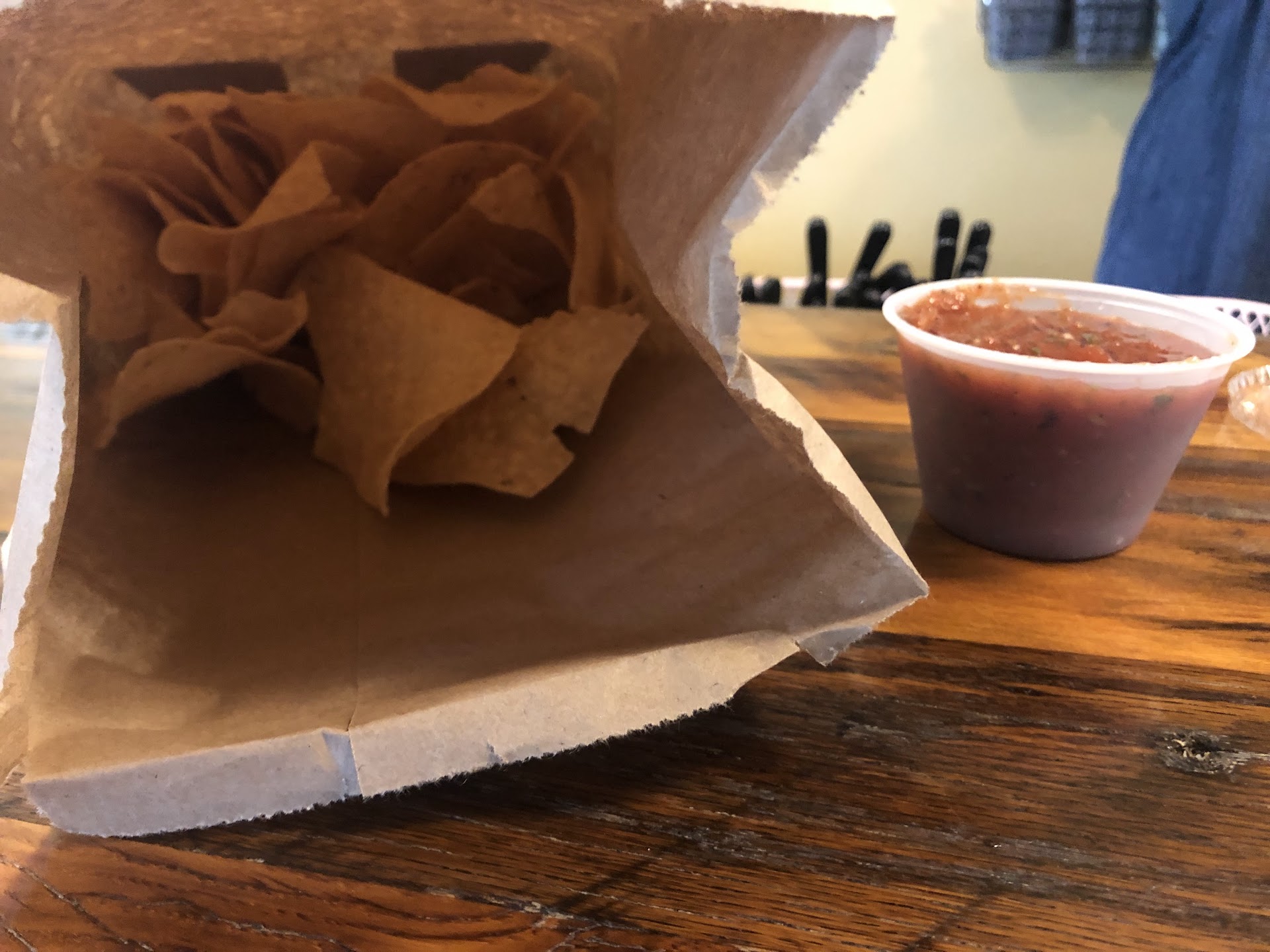 Walking in the door, it was a cluster of confused people walking in all directions. This restaurant is not a standard dining restaurant, you order at a counter then pick up your food then find your own table (not cleaned prior, and no tables were cleaned between customers during our visit). There is terrible flow for customers entering and exiting. The order counter, where there is NO menu board on the wall, is all the way to the right-- but the menus are on the other side of the restaurant! Customers must walk past the exit door where customers are walking out, to get a menu before walking all the way back to the right to order. Customers are waiting for their food by the counter in a crowd in front of the entrance door and blocking the order line (due to the layout), causing further frustration because this place is far too small. About the food: the salsa is very good and is restaurant style (minced) with smoke flavoring added. The large size is generous with enough for 4+ people or enough to take home. The chips are good. I had 3 different tacos, of which the brussels sprouts taco was by far the best. The beef barbacoa was not traditional but it was good if you like plain beef. The chicken was good. My friend ordered the taco salad and liked it. This is NOT traditional Mexican food by any stretch of the imagination, so if you're seeking traditional this isn't it. That doesn't mean it's bad, it's just different. The decor is basic inside and lacks a theme (mismatched chairs for example but no quirky vibe otherwise) and the outside is painted in loud colors. 1960's dance music was playing, which was odd for the ambiance of millennia. There is an outdoor space for dining. Parking was fine and easy to get in and out. Staff were kind, though we had minimal interaction since ordering at a counter is the only staff interaction. This restaurant has a fast food (with dine-in only) restaurant design, but worse due to no menu board (correction: beer list is on a wall board, but not FOOD... At a restaurant!) and menus being across...