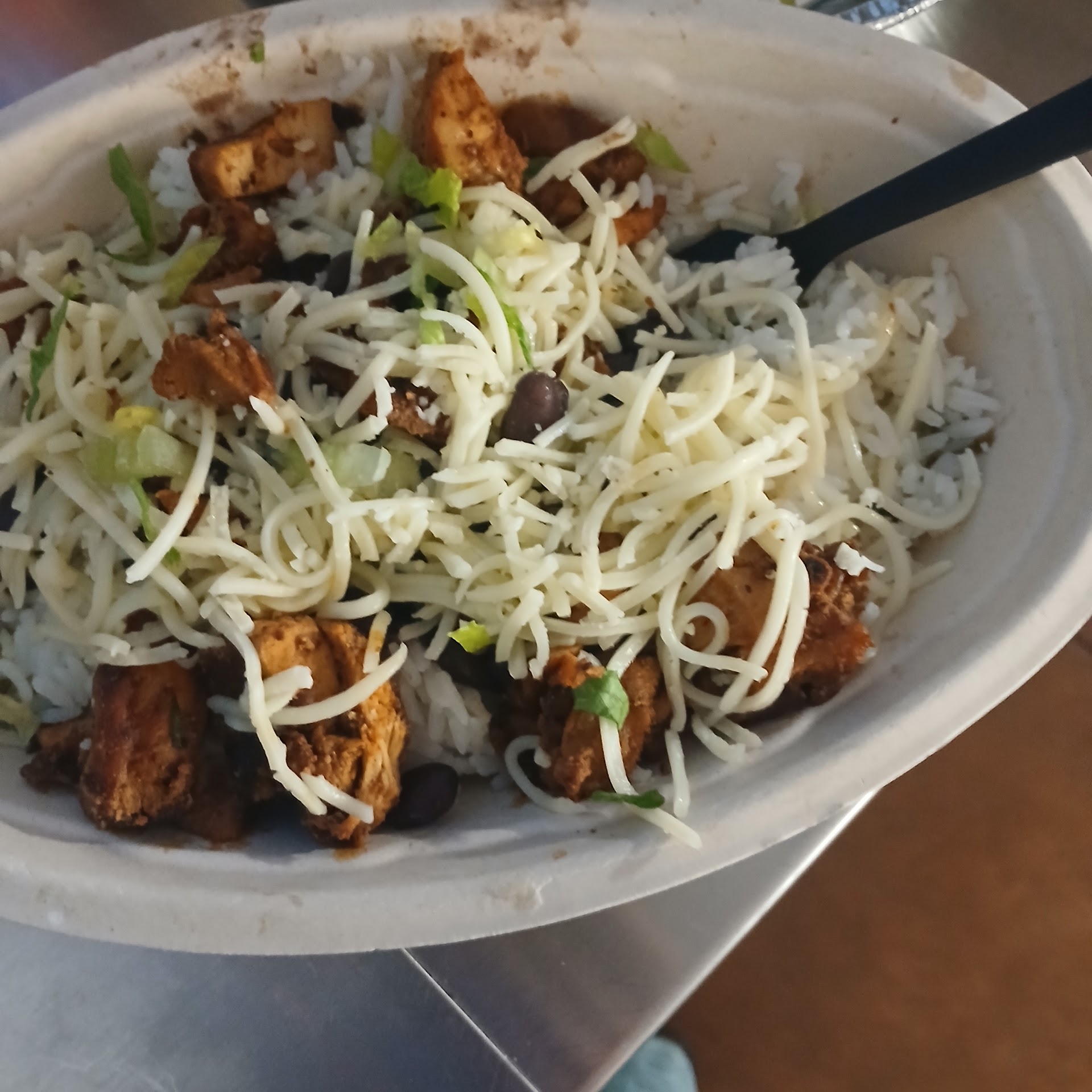 Read moreSo the only person working hard was this wonderful sweet lady Amylea Collins she was basicly working alone, taking care of the inside along with a guy on the grill. There was a second fill station i assume for online orders but Amy was basically cleaning up stocking and fulfilling everyone's orders inside she was super nice told us about the new chicken honey Chipotle for tomorrow apparently we came on the wrong day need to come back tomorrow the poor thing was working so hard by her self there was 2 guys just standing around talking then another girl came up front to ring us up but amylea I asked her name so I could write about how wonderful she was she was smiling and making everyone happy and people were upset at the long line out the door we waited a long time but it wasn't by anymeans her fault she was working double time trying to get eveyones order done this is the first time visiting this new spot for her alone we will come back I usually don't come back to places when I see people standing around not working because it means they don't clean well either but she was putting in the effort for at least 3 people march 6 at 10pm and now I have to come back and try the new chicken honey thing tomorrow she made it sound so good. You should definitely give her employee of the month and a pay raise for having to work alone it was really busy to not have enough employees it's going to cost u customers in the long run because u usually only get ur first impression once thanks to amylae u will get a second shot from us. For some reason, it reminded me of a sabaros pizza from newyork Pizza Joint, not a Chipotle, but we will see. We usually go to the north side to go to Chipotle. Happy we stopped in tonight, all tips for the night should go to Miss Collins. Hope she sticks around this will be our new favorite place...