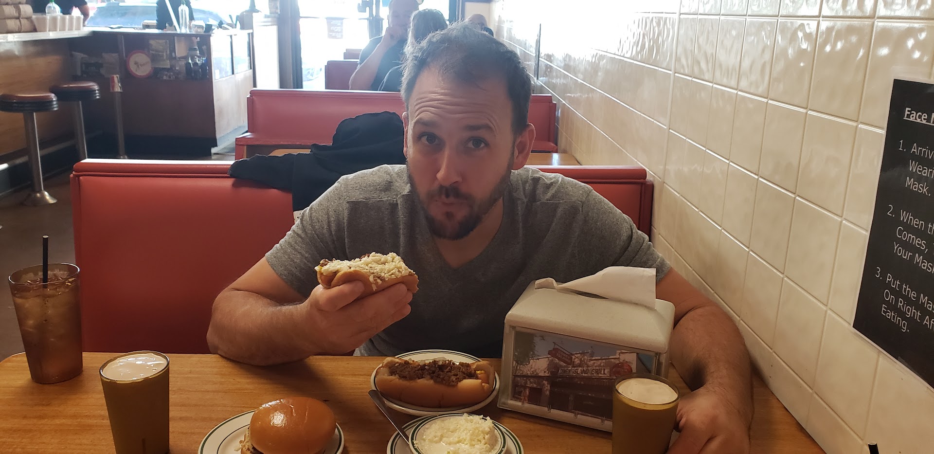 I heard a lot of hype about this place and decided to check it out. Honestly, it's just okay, not sure if I'll go back. My 8 year old son got a cheeseburger and vanilla shake and those were good. Servers are great too, very attentive and friendly. But they don't serve fries at all, so it's a bag of chips or coleslaw, really?? I ordered one 'chili dog' and one regular dog with relish, onions and mustard. I don't understand how plain, dry over-cooked ground beef is considered 'chili'. I've had a Coney Dog at other places where it's more of a meaty chili sauce and, in my opinion, it's much much better. The interior is somewhat bleak, and with no background music, it feels kind depressing. I love diners in general (Munch's is my fave), but this one just didn't impress me much. Maybe I would appreciate it more if I had grown up going there? Sorry, but it just didn't live up to the...