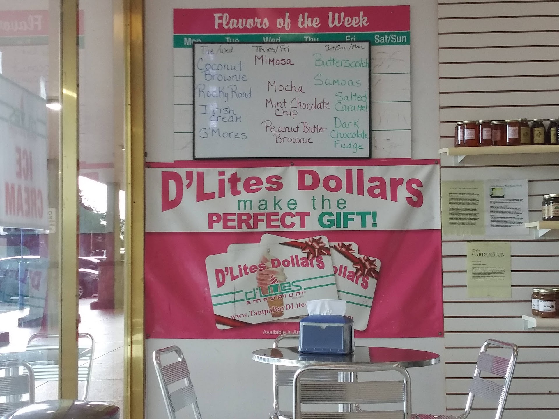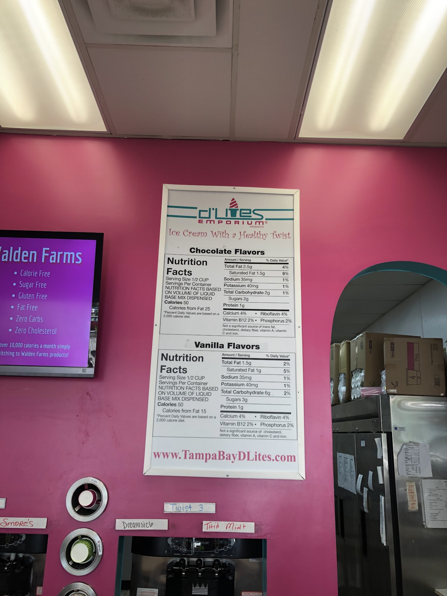 Read moreD'Lites is the best kept secret in Pinellas County. LOVE LOVE LOVE their product and buy it in bulk once a month to keep in the freezer at home. Also love that they carry Walden Farms. The staff is always incredibly friendly and nice as well--even asked to help me carry a box to the car!!! The one-star review that complains about the sound made by the machine is both ridiculous and unfair. Why would you try and harm a business based on the SOUND made by their machine! The line should be out the door every day....people do not realize how much sugar they ingest by eating regular ice cream off the shelf. I am not even diabetic and I only eat D'Lites ice cream. Why eat 40 extra grams of sugar when you can eat D'Lites at a fraction of the carbs!?!! Please open another location...