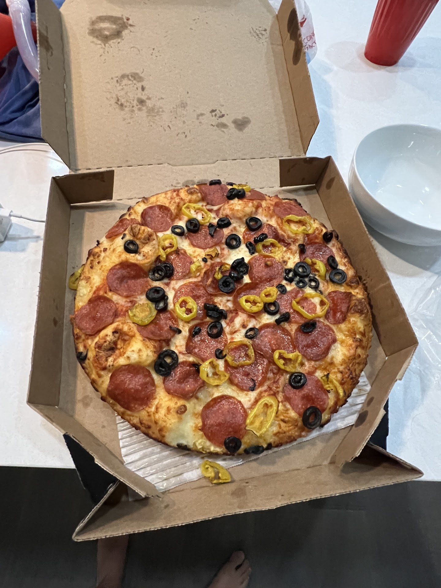 The people in that store work hard and you can tell they really care (more about that later). BUT the place is a s… show, it’s very disorganized. Deliveries from that store have ALWAYS been problematic so “I thought” it would be easier to pick-up lol I got there early and my pizza was still in the oven. But as it turns out (while I was waiting) it went out the door to the wrong person. Okay “I thought” no big deal, they’ll made another and honestly I didn’t mind waiting! From previous experiences I knew this was going to be a show I wanted to watch, and I wasn’t disappointed lol. In all I was there about 40 minutes. And in that time there had to of been at least half a dozen other foul ups. The calls were coming in, delivered the wrong pizza , walk-ins being handed the wrong or incomplete order, orders not being filled, you name it! The store looked well staffed but that I can’t say for certain. In my humble opinion theres just one think wrong with that location… management. Management doesn’t have a clue or more likely their so darn busy they just don’t care. Oh btw… the pizza they had to remake, it was wrong lol… I knew it wasn’t correct because the manager showed and asked me if I’d wanted it anyway. At that point I had seen enough, anything else would of just been a repeat. I eat just about anything but I knew my wife wouldn’t touch it, she hates thick crust pizza. Feeling defeated I took my pizza and ate myself sick lol. The people working there are hard workers and every time something went wrong you can see the disappointment in their faces … but gosh...
