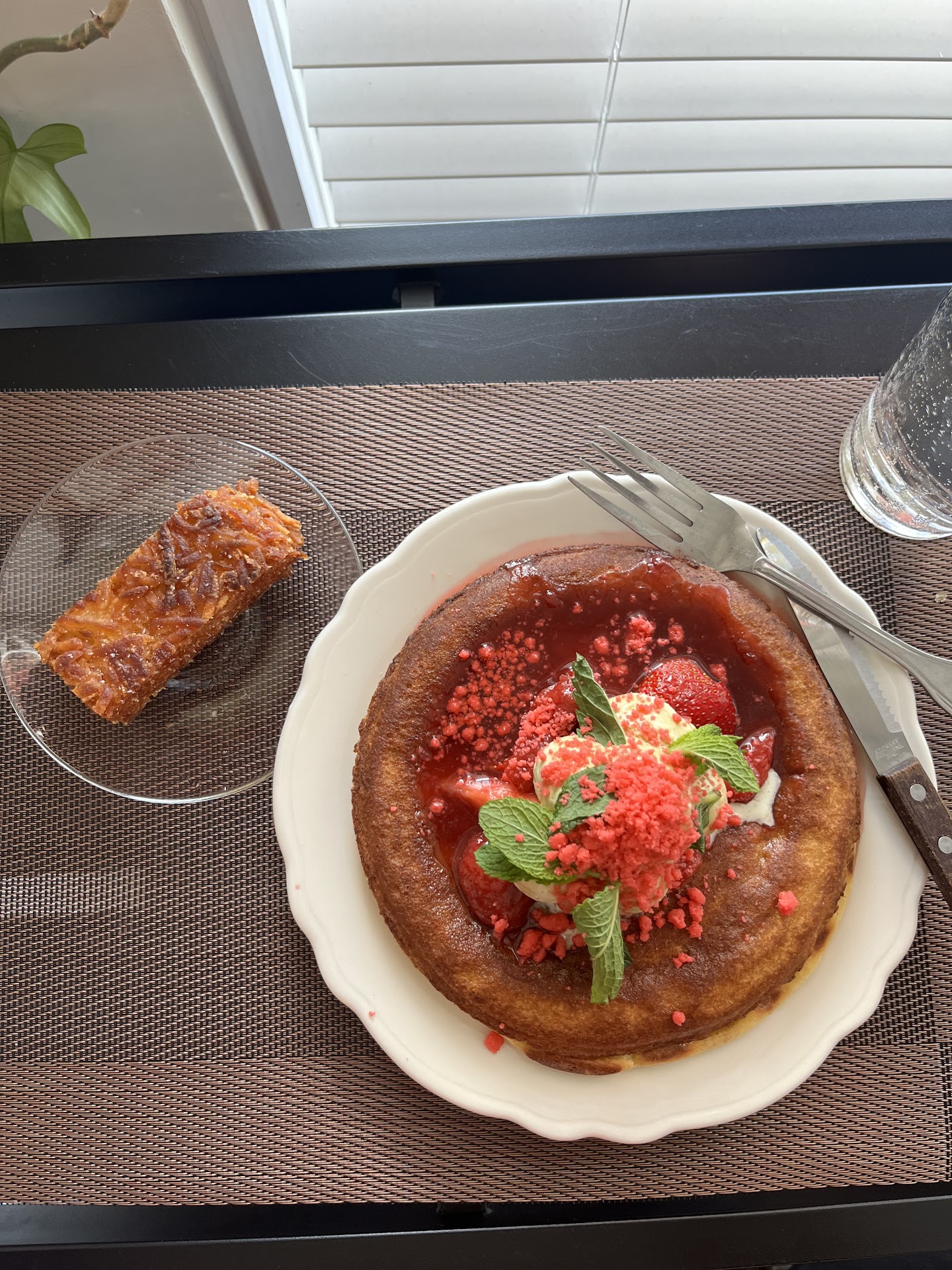 The food is great expertly crafted. This was my second time there and they have a more artisan vibe in a smaller intimate setting. We had a minor issue this go around. I originally ordered the chicken sandwich which I’ve heard is amazing when it arrive the flower had sadly burnt. I asked if they could refire it however they were out of chicken for the day sooo I ordered the strawberry pancake instead and a hash brown - I had the apple pancake last time, which is why I was switching to the chicken sandwich in the first place, but the strawberry pancake is phenomenal. It is it a great experience if you ever see it on the menu it’s a must ORDER!!! order it has strawberries, strawberry syrup with Matcha whipped cream, and strawberry crumble on top. Even if you DONT like strawberries this is a treat! Its not too much Or overly strawberry-y- we also had the ragu eggs Benny which was tasty but not a Benedict to me.