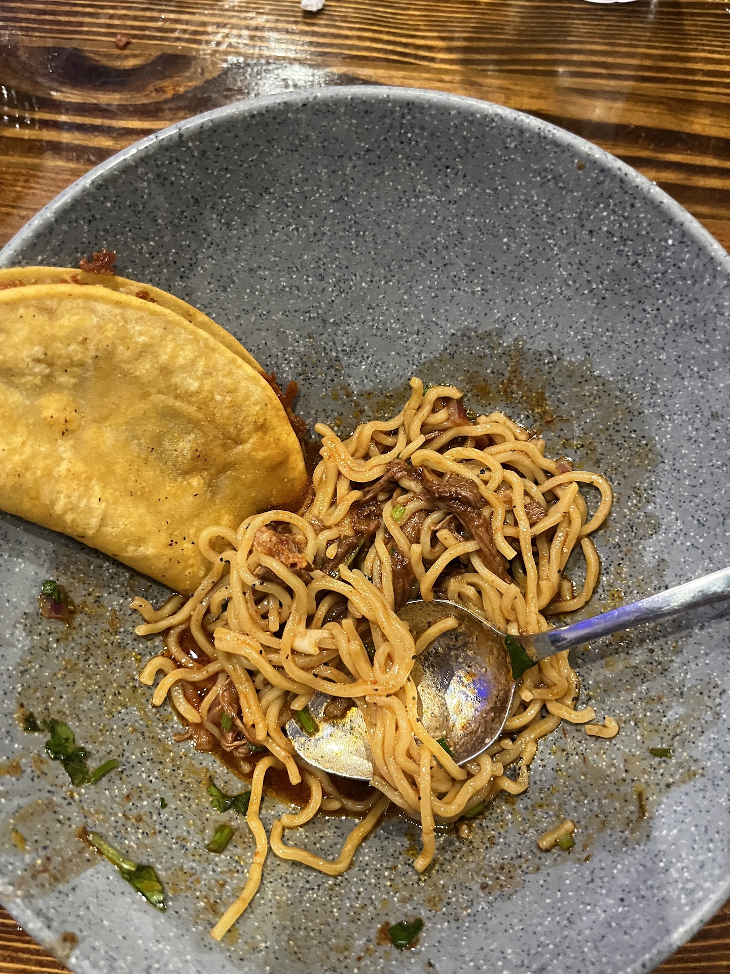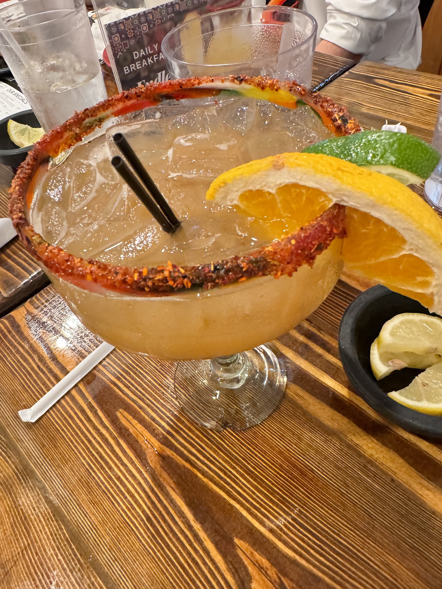 Read moreWe ordered to go from here one time before and it was decent but when we saw the restaurant, we were impressed with the decor so we planned to go back. Friday night we decided on here for a bite before heading to tampa. We were seated by the server, since there was no one when you entered. No big deal. We ordered water and a margarita. Chips came right away and then 20 minutes later the drinks. (One margarita and one water). Before she walked away we figured let’s order. We ordered Mexi Calamari and the 3 Birria taco meal. Almost 30 minutes later, even after we checked on the meals, the meals came. (No refills for drinks asked at all and now it was the bartender serving us.) The Mexi Calamari breading was falling off and instead of fried Poblano peppers, we had slices of fried jalapeños thrown on for decoration. Calamari was tasteless and extremely chewy. The Birria tacos looked good until you picked them up. Immediately the inside of the tacos started to fall out the bottom. The “shell” was thick and fell apart at the bottom like it was sitting there waiting to be delivered to the table for some time. Ended up using utensils to eat the tacos. Did I mention the passion fruit margarita was fruit juice on rocks?! No one came back and when heading to the restroom before leaving, I asked for our check to be dropped off. Terrible experience with staff but more importantly with the food. The location in St Pete is 100% better. Oh yeah, the decor was cool.(No pictures were added because although the pictures would show how nice the meal looks, it doesn’t mean the...