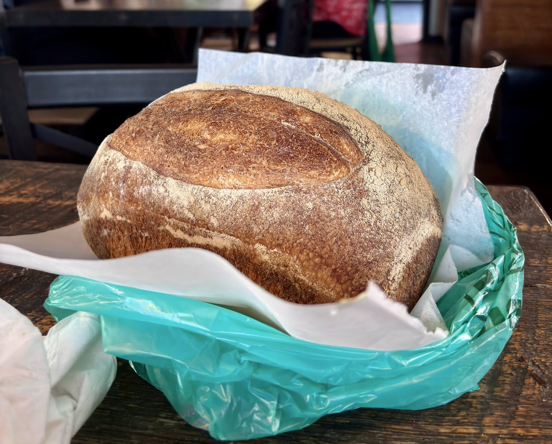 We purchased a freshly, just out of the oven, loaf of white bread to go for under $5. That evening we very much enjoyed the bread with our salad. The bread reminded me of mom’s bread from the 60’s. Delicious. The crust had one corner that was so very slightly darker than the rest of the loaf that helped bring additional great flavours to the loaf. The bread was a bit resilient to the cutting knife as it was crispy on the outside and like a marshmallow on the inside. The texture was fabulously soft and chewy. It felt good in the mouth and tasted simply wonderful. We saw a few people with bread take out orders and I suspect the limited number of loaves moves pretty quickly.