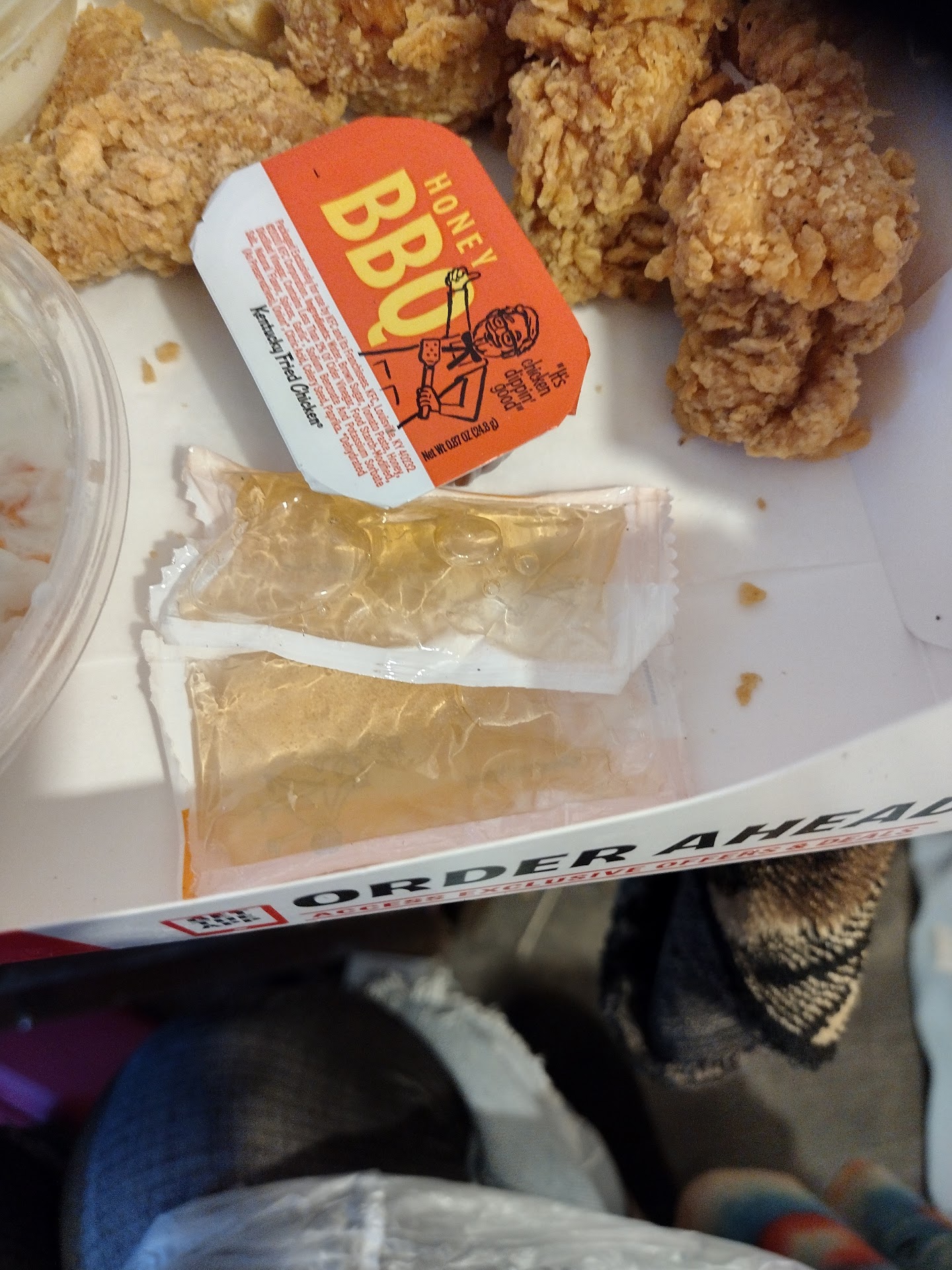 Ā Ā Ā Read moreWe first tried to go we sat at the speaker box for about 5 minutes my husband said maybe there's a bill so I backed up and I pulled up and I backed up and pulled up again I yelled at the Box nothing no response so then we finally drove around to the window and sat there nobody came to the window I honked my horn two young guys looked out the window at me and went on about their business they basically ignored me so then we drove around the block and parked in the parking lot and went inside the kid behind the counter that took our order was so high you could barely see the whites of his eyes they were out of coleslaw they didn't have chicken sandwiches they weren't thawed out they said it would be at least 10 minutes for them to be cooked and thawed out then I looked over and they were waiting on a black lady in the Drive-Thru I finally went up to the counter and watched the lady put my order in a bag tied two knots in the bag and stand there for a couple more minutes staring at the screen and then she finally turned around and looked at me and said what did you order and I told her and she said oh this is yours I took it home it wasn't Kentucky Fried Chicken it was over salted and didn't have the Kentucky Fried Chicken spices it was awful I will never ever go there again it was so disorganized and chaotic I think they were all highest kites I have been wanting Kentucky Fried Chicken for about 2 weeks I was looking forward to this I will never...