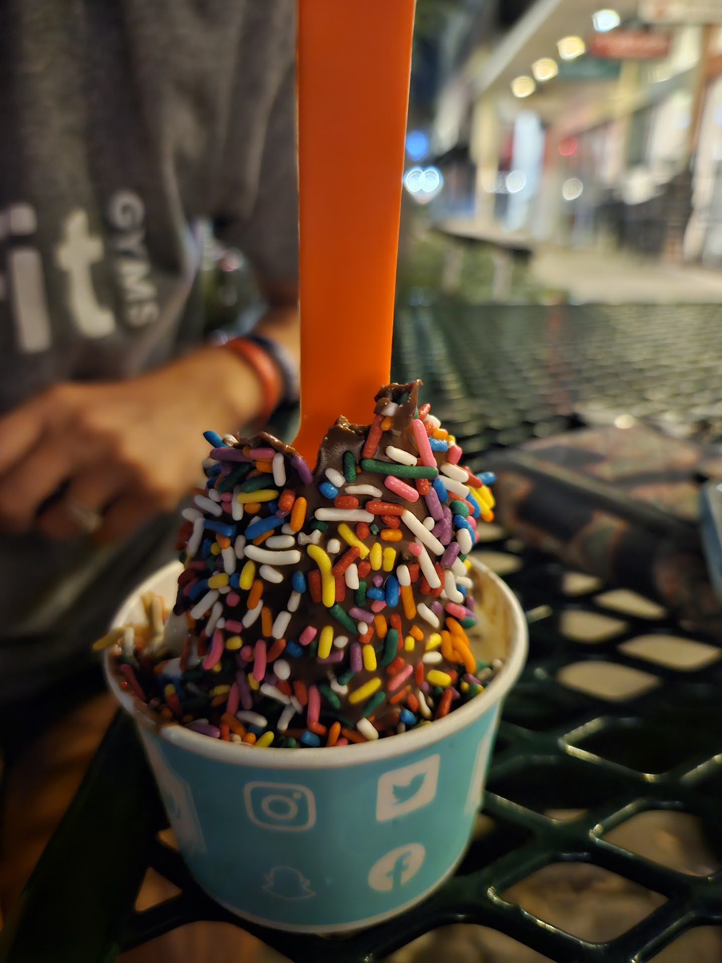 Be prepared for all the options. You can get soft serve 🍦, regular ice cream 🍨, cheese cake🍰, 🍩donuts, cookies🍪, and cookie dough. Then you get a choice of 30 flavors to dip. Not to forget about the 20 toppings you can cover your ice cream with.