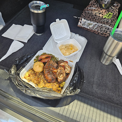 First off, the food is amazing & the people running it are really nice. If we're ever in the area again, we will stop by for a meal. /// We got the jerk chicken, yellow rice, & collard greens. It's not some dry grilled chicken. It's dry rubbed, lightly smoked, & then sitting in a hot thin gravy. Just on the edge of too spicy, but not. Just "right there". Juicy. Flavor all the way down to the bone. The collards were cut up nice. Tender but not mushy. If you go on one of the days they do chicken & rice, get the chicken gravy over the rice. He threw in a dumpling & a couple pieces of fried plantain. Hands down, some of the best BBQ chicken either of us ever had. We split a meal & were full. Get the banana pudding if they have it. /// Nothing negative to say. Here's some things to know though if you're going to stop in: There are a couple of tables tables, but otherwise it's to go. We just did a hatchback picnic. It's Florida. I'm there to be outside anyway. Cash only. They're open Thursday through Sunday. They have a set menu. (If I remember correctly) each day there's a set 2 or 3 entrees & 2 or 3 sides. I suppose I'll get the oxtails next time I'm in town. (If I did this right, there's a photo...