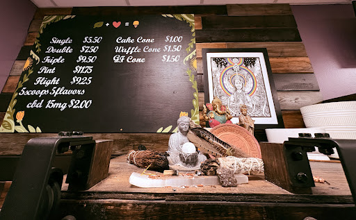 Wow! Deliciousness. This was my first time visiting Plant Love Ice Cream in Gulfport. I frequent the Central location. The service tonight was top notch. My ice creamista, Opal, was polite and very attentive. She was patient as I decided between the Turmeric CBD, the Coffee Oreo and The Blueberry. The vibes are high and the two people working tonight made me feel very welcome. I like to purchase some of my spiritual tools here: prayer flags, incense, Palo Santo, etc. Great artwork. Lovely location. Good spot to get some coconut based ice cream and meander....
