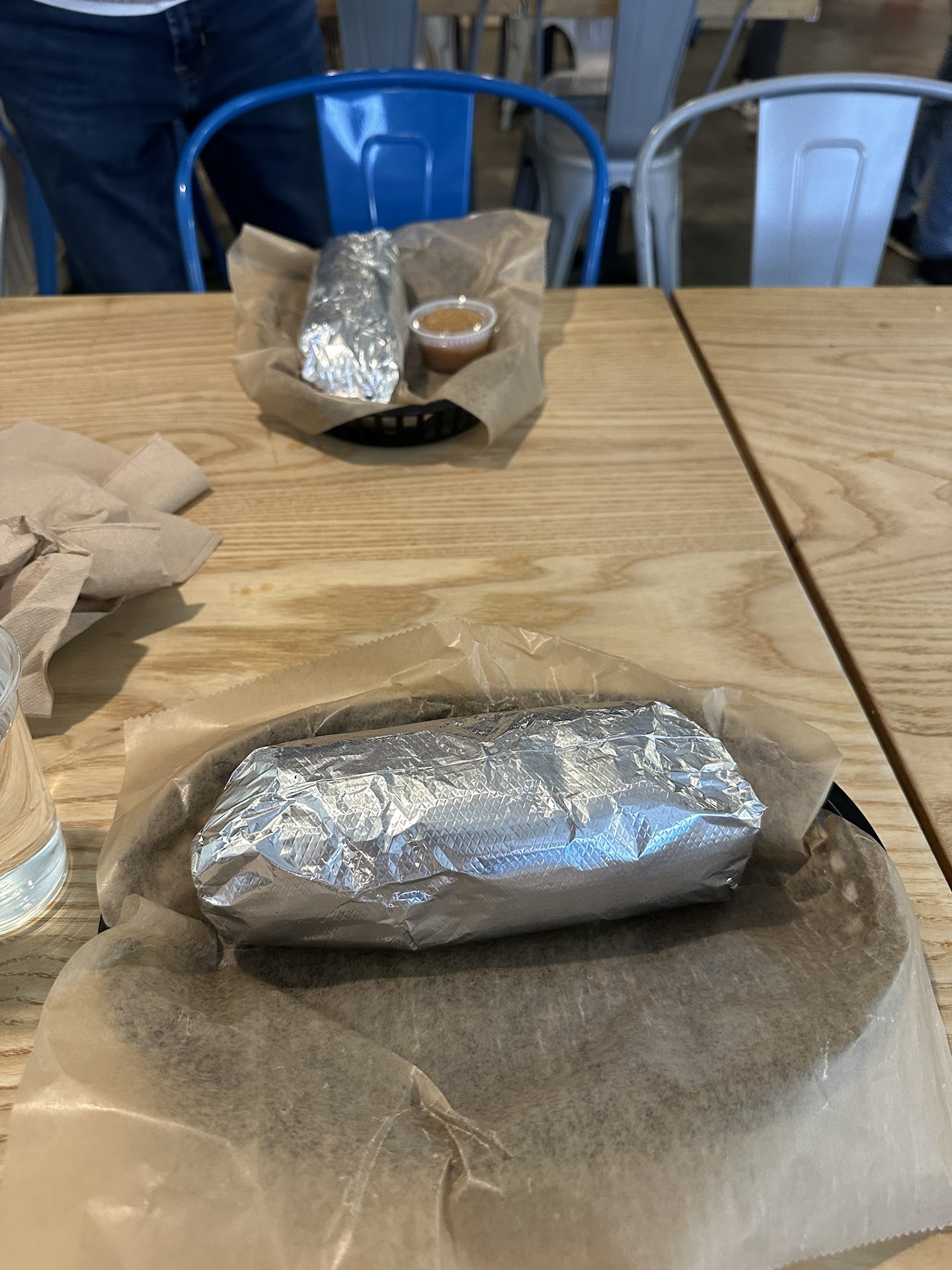 VIBE: The place was clean and modern. No straws, but the cups and covers are plastic. If you dine in, they give you either a basket lined with wax paper or a stainless steel bowl. The smells of cooking meat (in the morning) while we were working next door brought us in.
