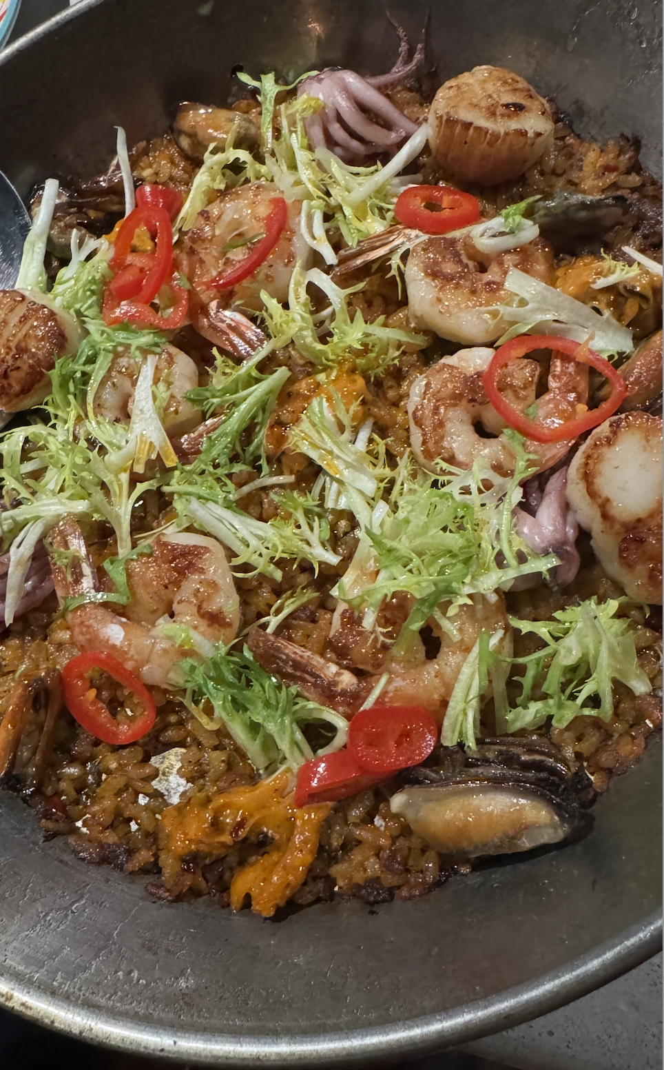 My opinion: -Paella is by nature, a dish that takes some time. That's how you get a bit of crispy rice on the bottom and the proper texture on the rice above. I would have much preferred a note that said "Takes 30 minutes to prepare" vs the final product we received -The paella actually wasn't crispy on the bottom -It wasn't particularly flavorful. It was very oily, almost like there was mayonnaise added? -The portion size (when you consider the tiny amount of rice) is way off.