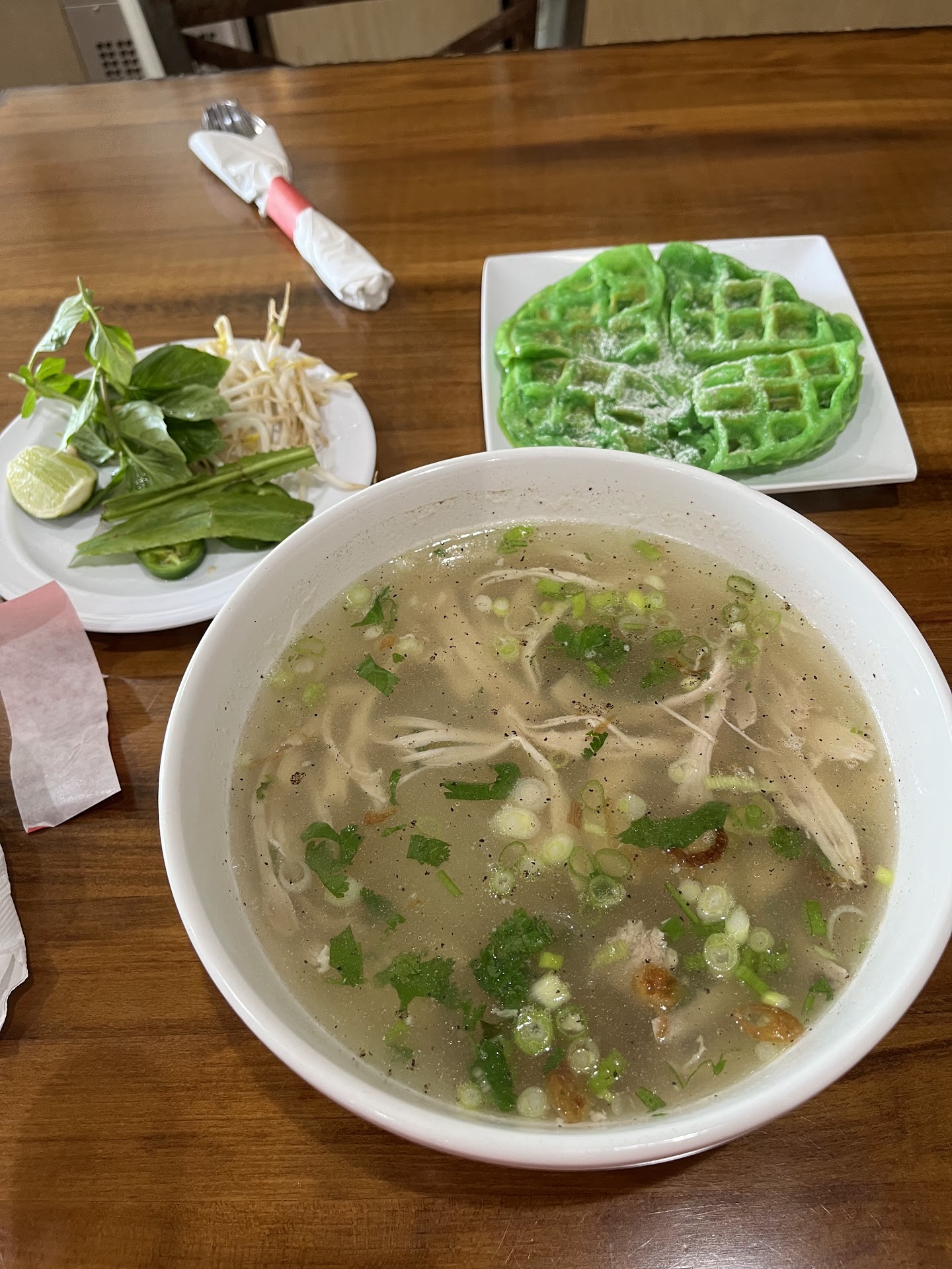 Read moreThis time I ordered a âMien Gaâ (chicken soup with glass noodles). The portion is extremely small, not worth the price of $15. The price is average for a soup bowl anywhere else. The issue is at the portion and the quality of this specific bowl. In the photo, you can see the amount of meat. There were a few more piece underneath, but I can tell that the whole amount does not add up to a small thigh. The glass noodle, Iâm surprisingly upset with the quality of the noodles. Itâs very soft, broken, no level of âchewinessâ that the âMiáşżnâ noodles should have. It feels like some kind of low quality instant glass noodles. This dish should be served with âRau rÄmâ not regular green onions and cilantro.