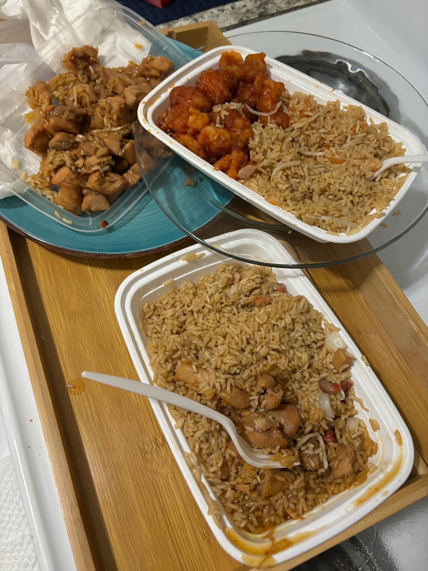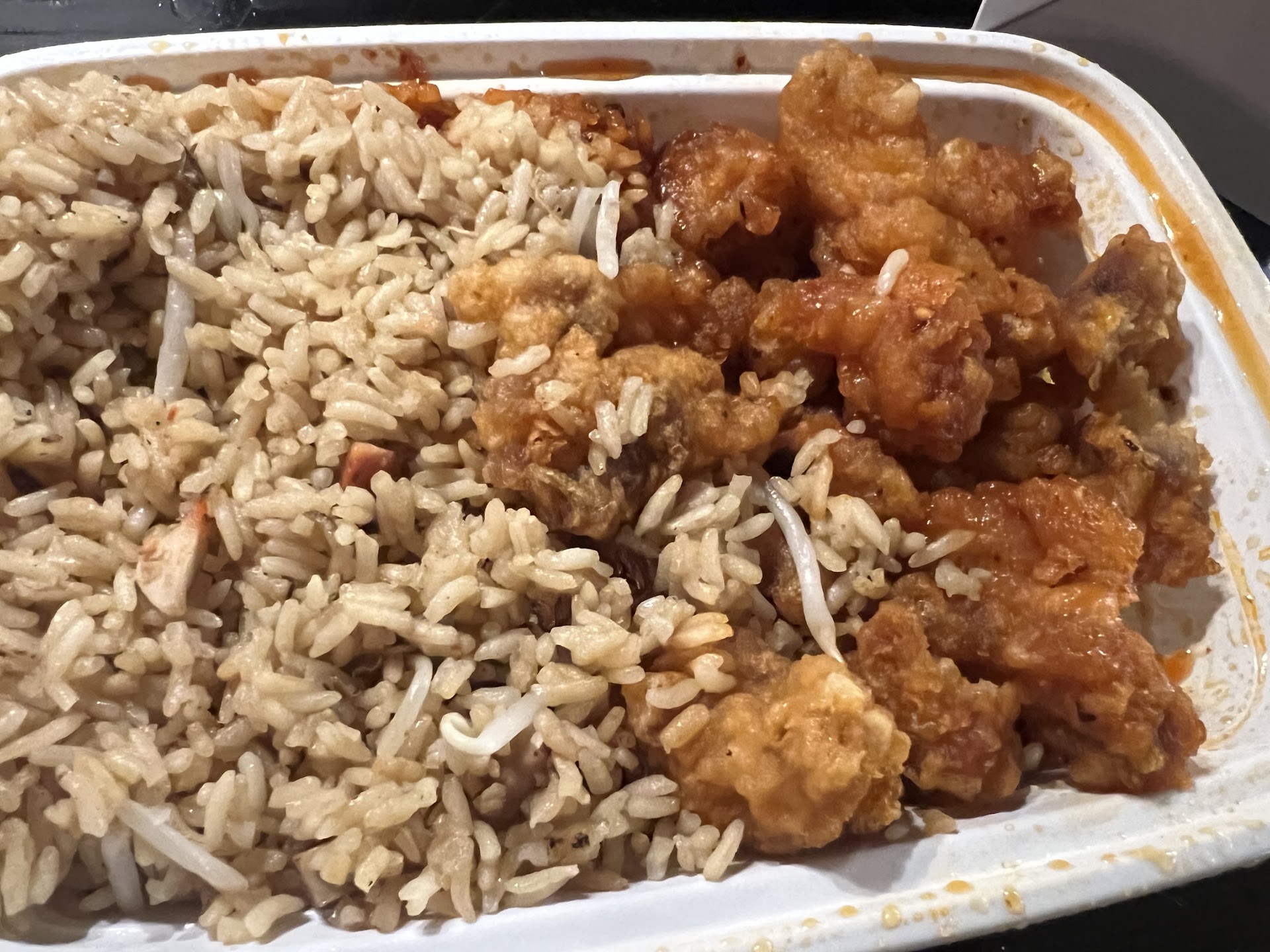 This place is absolutely terrible do yourself a favor and do not eat here! We ordered the general tso chicken dinner combination and the bourbon chicken dinner combination and when we got home to St Pete Beach a 20 minute drive mind you and we went to eat our food it tasted rotten everything looked Gray. not the right color it tasted like it's been sitting out for days my dog wouldn't even eat it. I called them and asked if we could just get our money back and explained what was going on and they told me if I could make it back and bring the food they would give me my $20 back I told him I lived in St Pete Beach and it would take me at least 20 to 25 minutes to get there they insisted that I do not put it in the fridge and wait till the next morning that I needed to bring it back the night of so instead of coming in and wasting gas I went ahead and wanted to post this negative review you can look at the photos and see that something is off about this food we threw the food out I felt sick immediately. If I could give this a negative 10...
