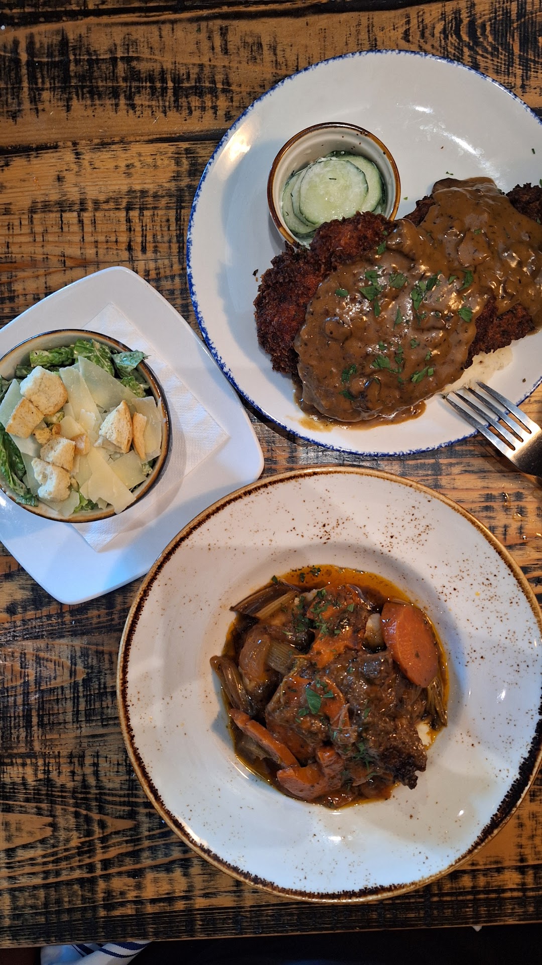 Read moreNice centrally located spot right across from the water. We chose this place because of the menu I was intrigued by the meatloaf dish and my wife was really into the citrus ginger salmon dish so we decided to give it a try. There are so many restaurants along the drag, but this is the one we chose, we went and got seated pretty quickly slightly bit of a wait for the waitress to table but once she came, took our orders for food and drink everything moved along pretty timely. The ambience is pretty unique. I was trying to figure it out the whole time we were there it’s sort of a rustic whiskey bar/modern fusion food it feels like it should be more of a barbecue joint inside but nonetheless and the menu is pretty broad. I asked the waitress what the most popular dish was and she said the chicken tikka which is Indian dish but who is I to argue? As I said I got the meatloaf the portion was humongous, it was good in flavor and moist in the middle but dry around the edges slightly disappointed at that and it was on a bed of sliced carrots and sugar snap peas of which I could not hardly eat. They were too hard. The salmon dish was perfect slightly pink in the middle asparagus were grilled to perfection, and I also had a Caesar salad, which was good but they put kale in it so that threw me off a little bit but still delicious nonetheless they have a nice selection of whiskeys and a pretty cool bar again. The overall field of this place is an oddity on one side of the wall. It’s sort of like a little mini sports bar and on the other side it’s dining, but felt like a smokehouse with a very vast menu prices I thought were pretty reasonable for this area especiallyand they do have a really nice outside seating area which we would have taken advantage of if it had been a little warmer unfortunately, it wasn’t warmest day in Saint Pete, so we opted for...