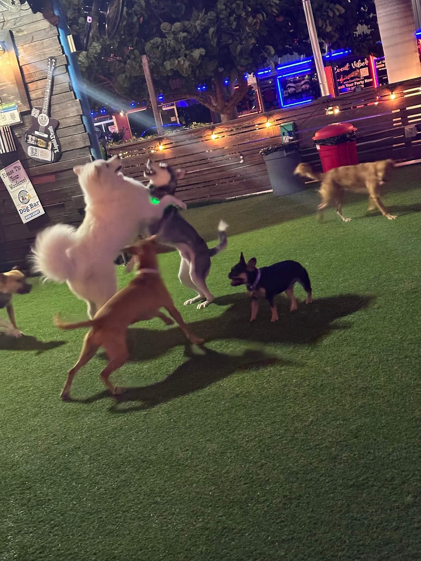 Read morePretty shocked as I write this. I had been wanting to take my dog here for a while and today seemed like the perfect day as it wasnât too hot and did not look very crowded. We entered and a very nice gentleman explained the rules to us and took my dogâs vaccine info. That is where the good experience stopped. Within 45 seconds of entering the dog section my dog was attacked by a dog named Kevin. Not just nipping or scuffling, this dog was full on trying to attack. My dog ran under tables and through chairs towards me and that is the only thing that slowed the other dog down so that he could not actually latch on to him. For reference my dog is 80lbs! The rufferree who was also very nice came over to my dog to immediately check if he had bites on his neck or ears. How shocking that within a minute of entering this place my dog had to be checked for injuries! After I checked my dog I noticed that my own leg was stinging, when I looked down I saw that my leg had actually been bit or gouged with this dogâs nail! Iâm sure it occurred when my dog ran towards me and the other dog was frustrated it could not get to him. Although Kevin and his owners were asked to leave no apology was offered to us from the dogâs owners. The only thing that was said was that Kevin was having a tough time dealing with the hurricane. The hurricane occurred two days ago and it rained in our area for one day. If your dog is so reactive that it will attack other dogs because it spent one rainy day inside two days ago then this is not the place for them! Given that the staff knew the dog by name I can only assume he and his owners are regulars which concerns me for other unsuspecting dogs and their owners. Sadly, I could not in good conscience recommend the dog bar to any...