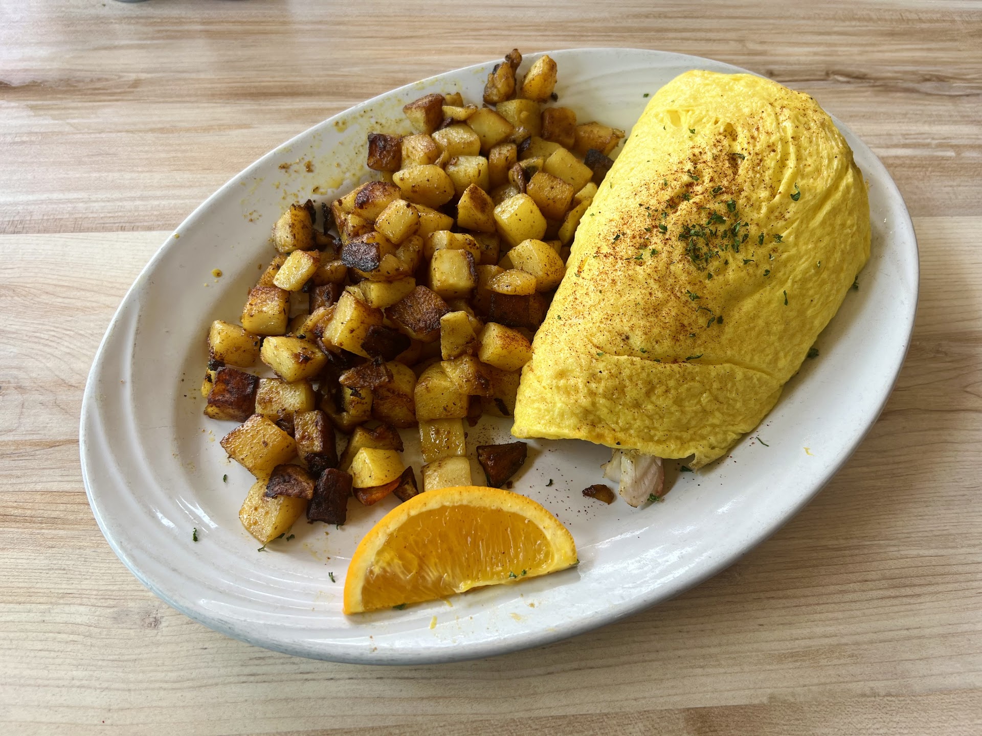 I ordered the eggs in a pan, the veggies were abundant and fresh, and the eggs were cooked perfectly.