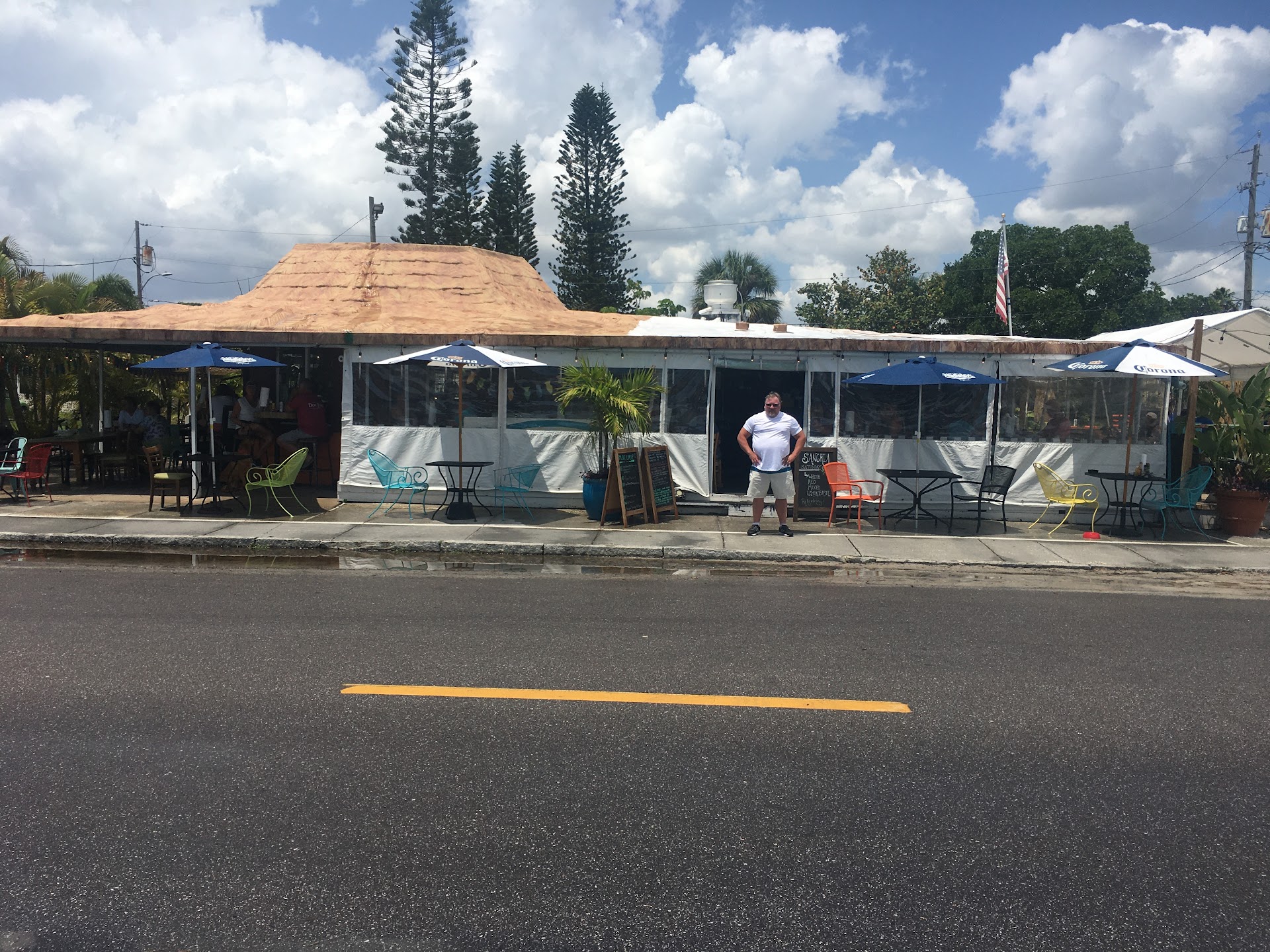 Positives first....Service was good. Food was very good. 2 of us ordered the burger sliders special and felt they were a little well done for our preference, but neither asked for them to be cooked medium and meat was still tasty. The mahi sandwich special was good and the pork chimichanga was enough for 2 people! Between the table we had 6 of the $4 Saturday Sangria specials. They were decent size and very good. Last, the homemade key lime pie with homemade whipped topping was awesome!