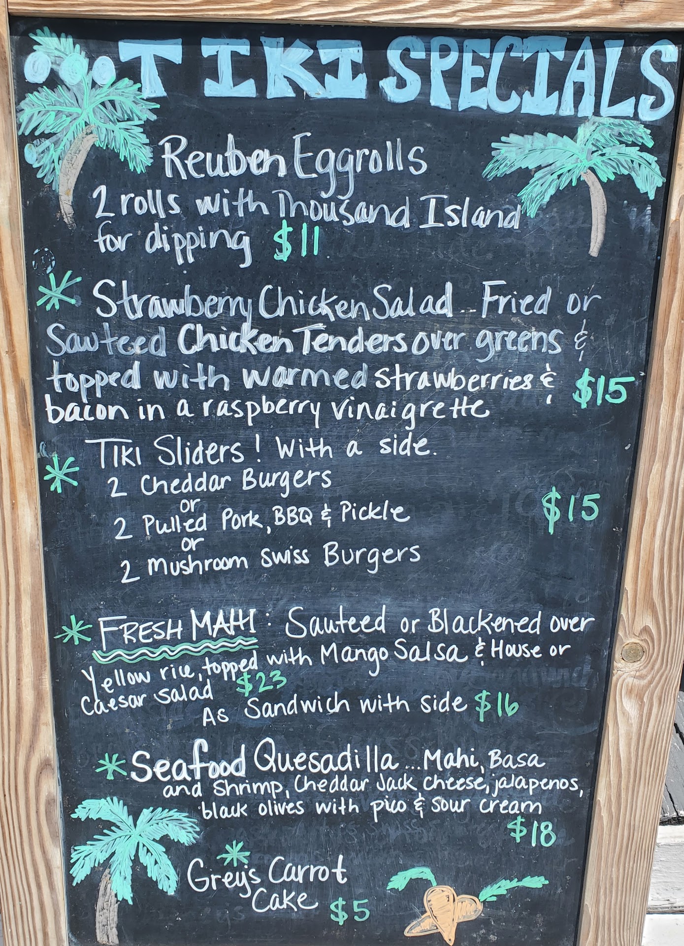 Negative.... just one but it is a HUGE one to us! 3 of us ordered off of the specials board (see pic below). Nowhere on the menu or the specials board does it say the prices listed are based on cash payment!! When we asked for checks, our server brought a tablet and verified what each ordered (2 tickets, 1 table). I noticed the special I ordered was $15.75 instead of $15 and wife's was $16.80 rather than $16.00. When I inquired, server said it must include taxes on each item. The answer seemed acceptable at the time so I said OK. AT THAT TIME I gave her the card to pay. She then swiped it on tablet and put both in front of me. The screen I was looking at was the amount of tip and signature. I asked for a receipt and server said she would print one in the back. Process repeated for other people at the table.