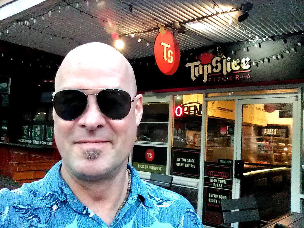 Whenever me and my 'other half' want pizza, it is always a tug-of-war, because he is perfectly content with [insert eye roll here] Pizza Hut or Dominoes. I, on the other hand usually want something a little more "authentic," with fresher ingredients (though I do NOT like froo-froo pizza that tries too hard). I've tried several other places in downtown St. Pete and have found most of them fit into that chi-chi category. Enter Top Slice. I'd seen this place listed as somewhere 'newer' to the downtown scene; which explain why I (probably) hadn't heard of it. But wow! Was I ever glad I saw it mentioned, because it stuck in my mind, and when we were downtown last weekend, we wandered in after running a bunch of errands.