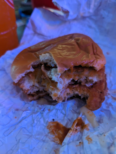 Couldn't hear the guy taking orders, but the manager would scream through the speaker. Pretty jarring. Asked for a Dave's double and a free jr frosty as I have the card for 2022. Was never provided a receipt, but I trusted they had it correct. I get to the second window and I'm handed two frosties, one small and one jr, overflowing so badly that it was dripping down the side and the lids not put on properly. I ask why I'm receiving two and she shrugged her shoulders. I asked if the guy at the first window charged me for both. She said "yeah, sorry." And she was the manager. Didnt try to correct it whatsoever. She was acting like she was fairly busy, but she seemed more scrambled than anything. She kept telling her cashiers to stop taking orders until she could catch up. And she was just packing the orders. There were maybe 3 orders inside and 4 in the drive thru behind me. Then of course with the frostys, my car became a sticky mess. The only reason I'm giving 2 stars is because the burger was at least right.