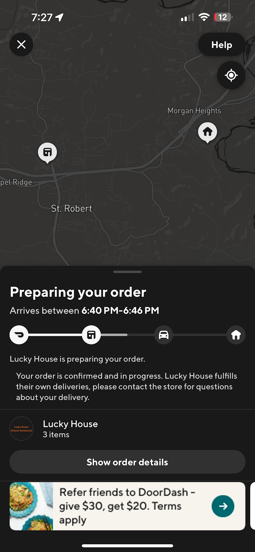 6 minutes after I placed my call to Lucky House, their delivery driver called me to apologize for the delay and he takes the fault for the terrible customer service and communication. I explained to the driver, who was extremely polite and understanding, that it wasnāt his fault at all and that if the people in store know that things are delayed, then they should have called me to update me BEFORE I waited 30 past the quoted time. I wonāt put his information out on here (which is why his number is blacked out), but my hatās off to him. He even offered to do everything in his control to make things right. I told him that the manager or owner should have been the person to make the call BEFORE I had to call them, BUT they definitely should have been the call that I received to apologize.