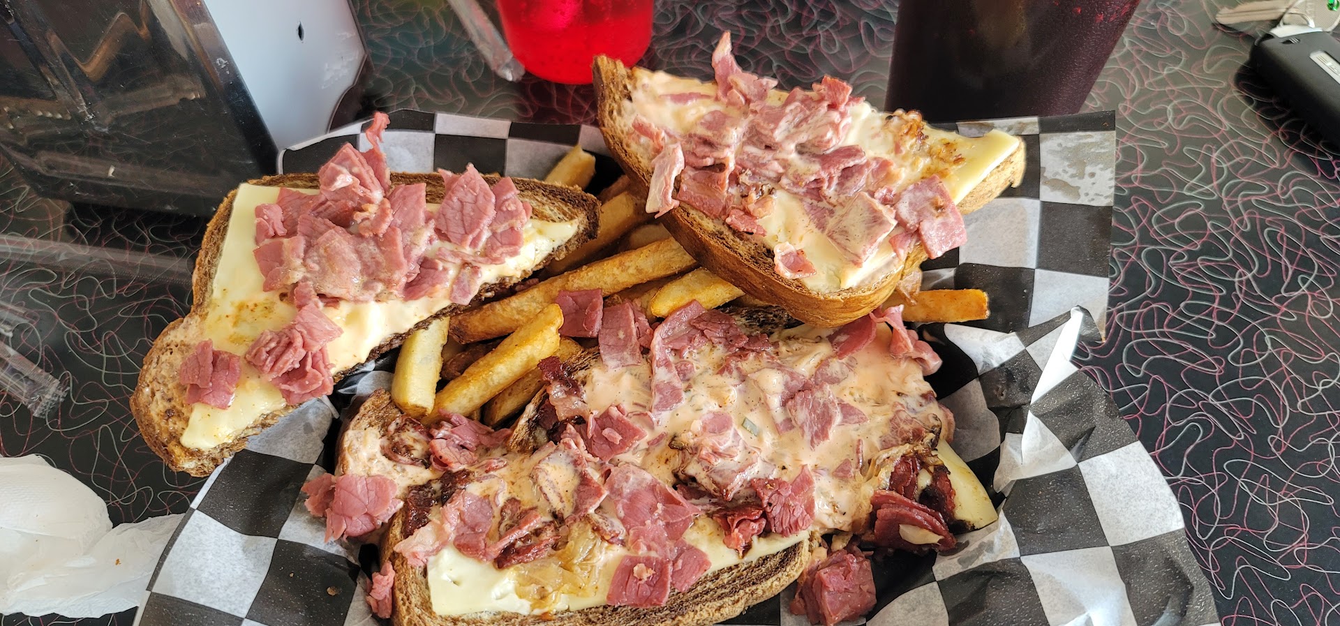 Save your money and go someplace else. 4 of us stopped by for a late lunch at what appeared to be a fun 50's style diner. Ordered 2 burgers, a grilled ham and cheese and a Reuben. The burgers were supposed to have onion straws on them, they should change the menu to just 1 onion straw. The grilled ham and cheese only had cheese on part of the sandwich, the parts of toasted bread that had anything on them were actually tasty. Then we get to the reuben... the first time it came out there were literally some small pieces of chopped pastrami, a slice of cheese and some sauce on the bread. When I showed the server, her response was "times are hard"! I have many years of restaurant management experience, that was the first time in my life I've ever heard such a thing stated by any employee to a customer. The server took the sandwich back to the kitchen where they added some meat and brought it back. As I sat eating the sandwich, I kept thinking that something is wrong. Then it hit me... there was no sauerkraut on the sandwich. I took my sandwich up to the counter to tell my server. She tells the cook that he forgot the sauerkraut and you would have thought she had told him to go dig a ditch. He glared at me like I didn't know what a reuben was, then disappeared behind the wall. The next time my sandwich was served, it came out with the same cold fries that have now been back to the kitchen several times and of course, the sandwich was cold. When I asked the server if the cook was in training, she said he had been there for 12 years! We did get a little bit of a discount for the sandwich, but that was too little too late. If this is standard operating procedure here...I don't know how they stay...