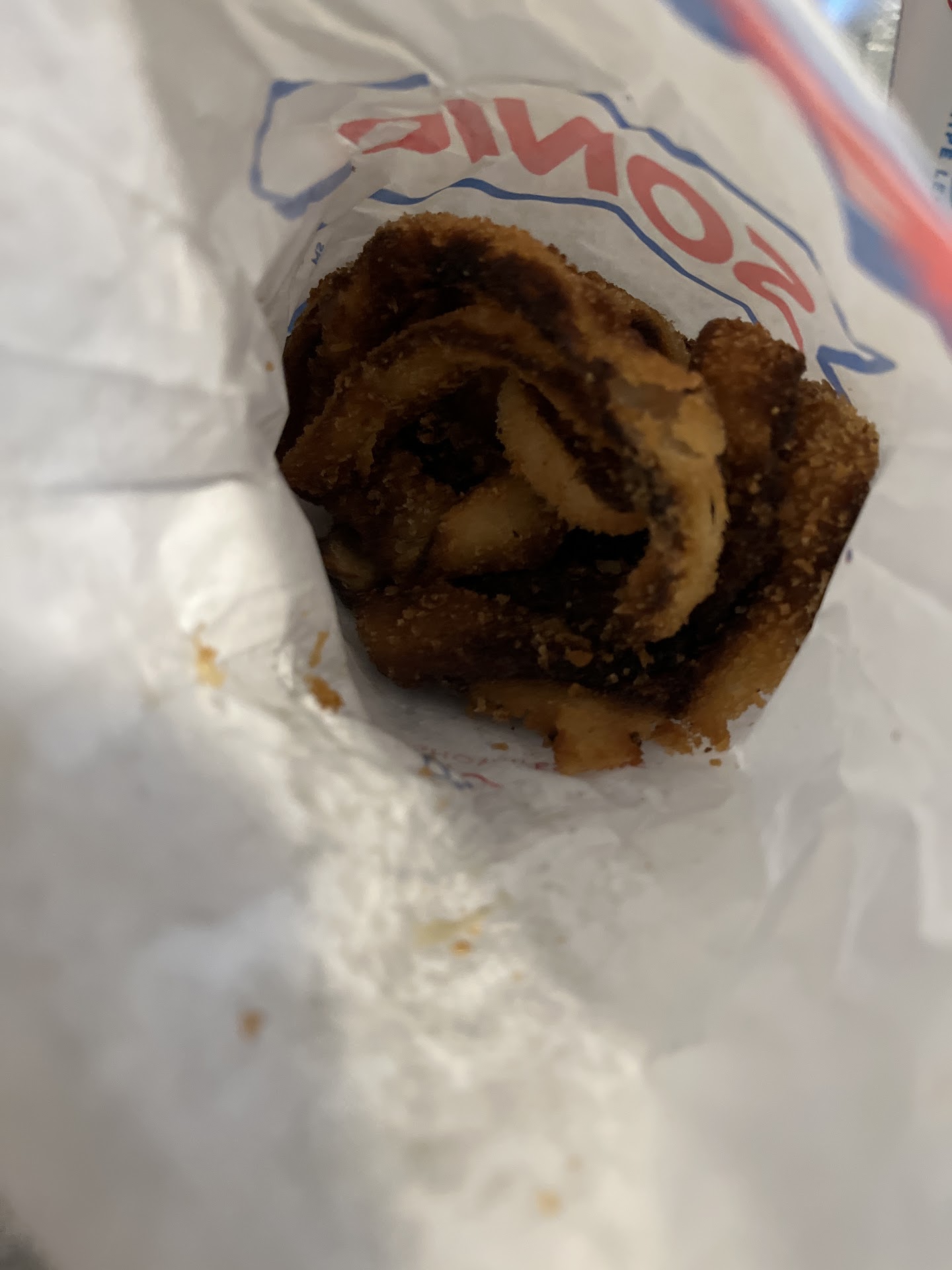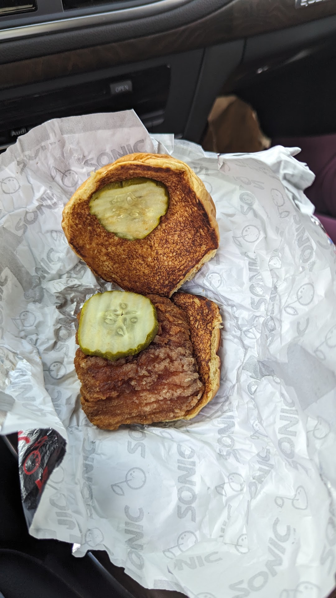 Read moreI often go through this sonic drive-in on my way to see my dad. I am dubious about ordering through the drive thru as no matter where I have purchased from (the Golden arches, the bell, the subway....and this one also I end up without the correct order. So onto my experience yesterday it was busy and I didn't see a pull-in spot so the drive thru it was. I wanted the new Wisconsin butter Bbq burger as it was delicious; I was told it was no longer available....go figure. I didn't at that point know what I wanted but ordered a corn dog , 2-onion rings, a soft pretzel and cheese, mozzerella sticks and a #1 hamburger. Lunch for two was $19.96. When I was at the pickup window I told the server that I need everything as far as the condiments-to the napkins. When he handed me my bags I looked at him and said I cannot come back today are you sure this order is correct and he told me that it was all there. I started checking the bags. It was all there and the young man smiled and gave me a "thumbs up". My lunch with my dad was nice with no complaints about the food. A Great Day and Great experience with the Saint Robert...