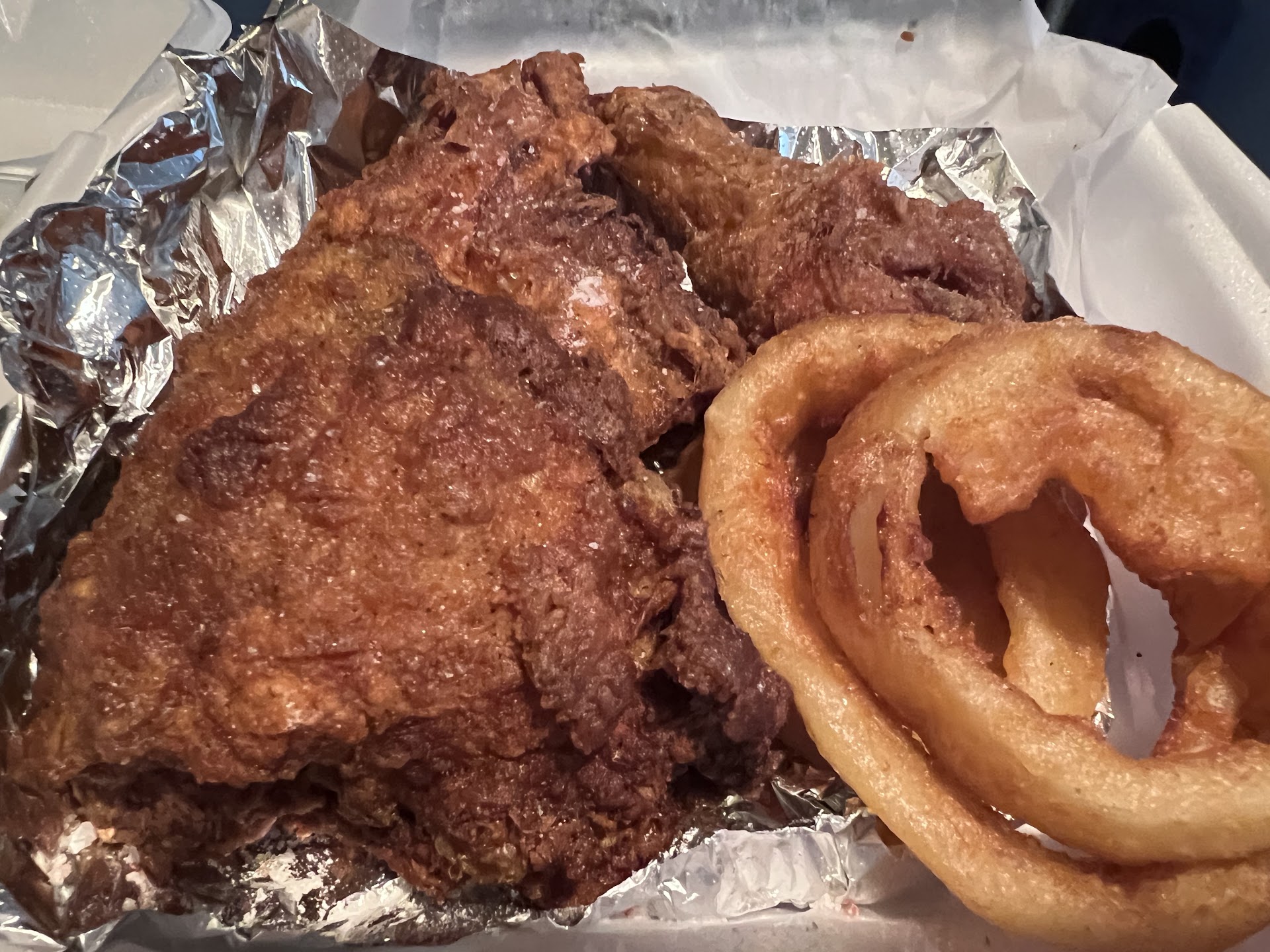 Update: So we got takeout from the Alibi tonight because I had been craving their broasted chicken ever since I had it the last time. Well tonightâs experience was completely different from the first time we tried them. My broasted chicken was so overcooked and not at all juicy and moist like last time and my onion rings were soggy. My son tried their bacon cheeseburger and fries this time. The burger was not good. I do not recommend it at all and the fries, despite asking for them crispy, were undercooked and floppy. My son who loves french fries, didnât eat hardly any of his fries and only part of his burger and he can eat a whole Five Guys burger.