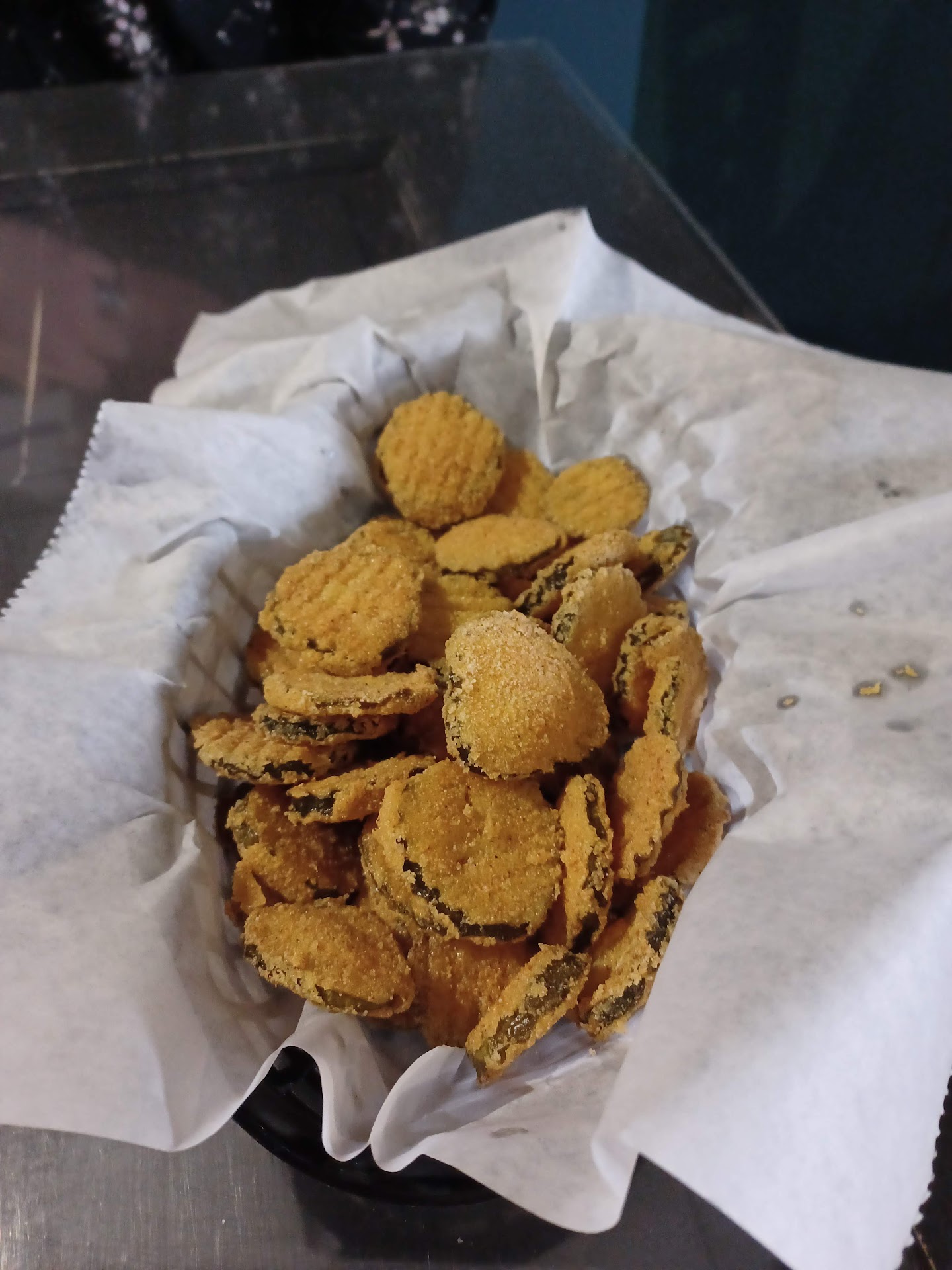Our orders came very quickly. We got a large helping of Fried Pickles at ($8.95) from their appetizer menu that came with a filled to the brim serving size of ranch dressing. I wound up getting the Mucho Nachos ($13.50) from the Appetizer menu but without Onions, Jalapeños and Chili due to my sensitive stomach. The nachos are then left with melted cheese, shredded lettuce, diced tomatoes with sour cream and salsa on the side, but served on aluminum foil and the cheese was only on the top layer of the chips. My GF got the Dickey V Sub ($15) which has 3 kinds of meat, lettuce, tomato, some cheese on it all on a toasted bun with her choice of shoestring fries with a small portion of Macaroni Salad.