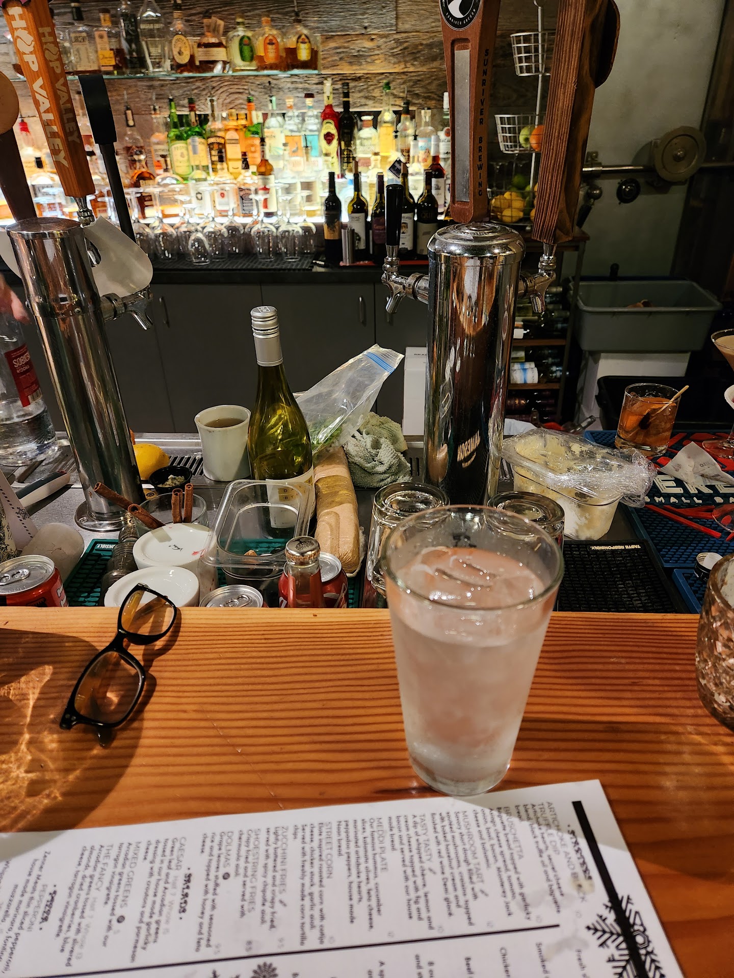 10 minutes later a "new drink" that Dyllan said he made himself was placed in front of me. Oddly enough my "new" glass had some bright green artichoke dip in the same spot I had placed it on my old glass.