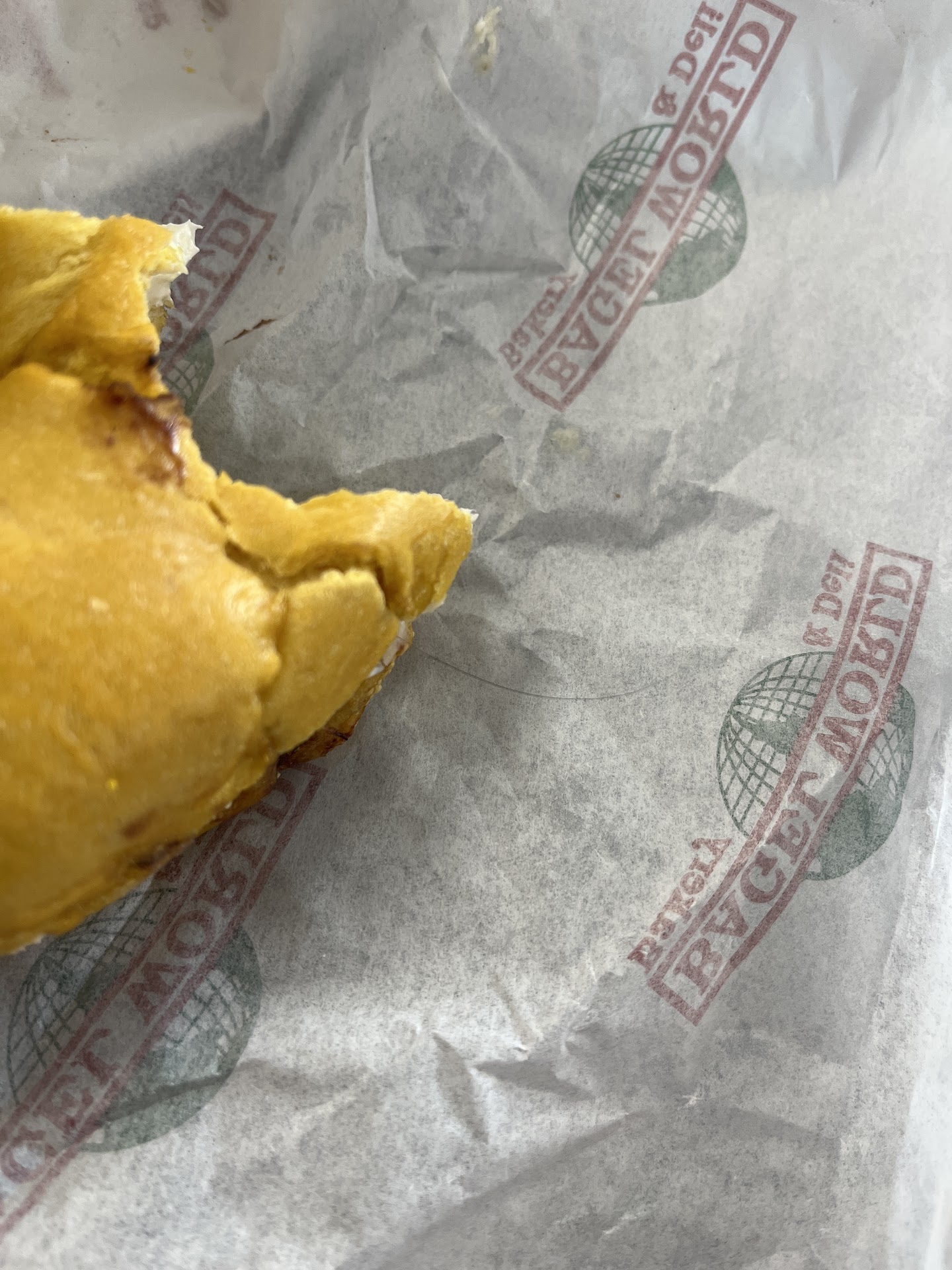 However, the efficiency of the process could be greatly improved. During my visit, the line stretched to the back door and moved slowly, largely due to some operational inefficiencies. The staff seemed to enjoy working together, which is great for morale, but they could benefit from streamlining their workflow. The current process involves a lot of waiting for shared tools and areas, like the microwave or sandwich station, and slicing bagels by hand further contributes to delays.