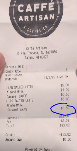 Annoyed that they charge $0.50 for the caramel! I didn't ask for anything extra.