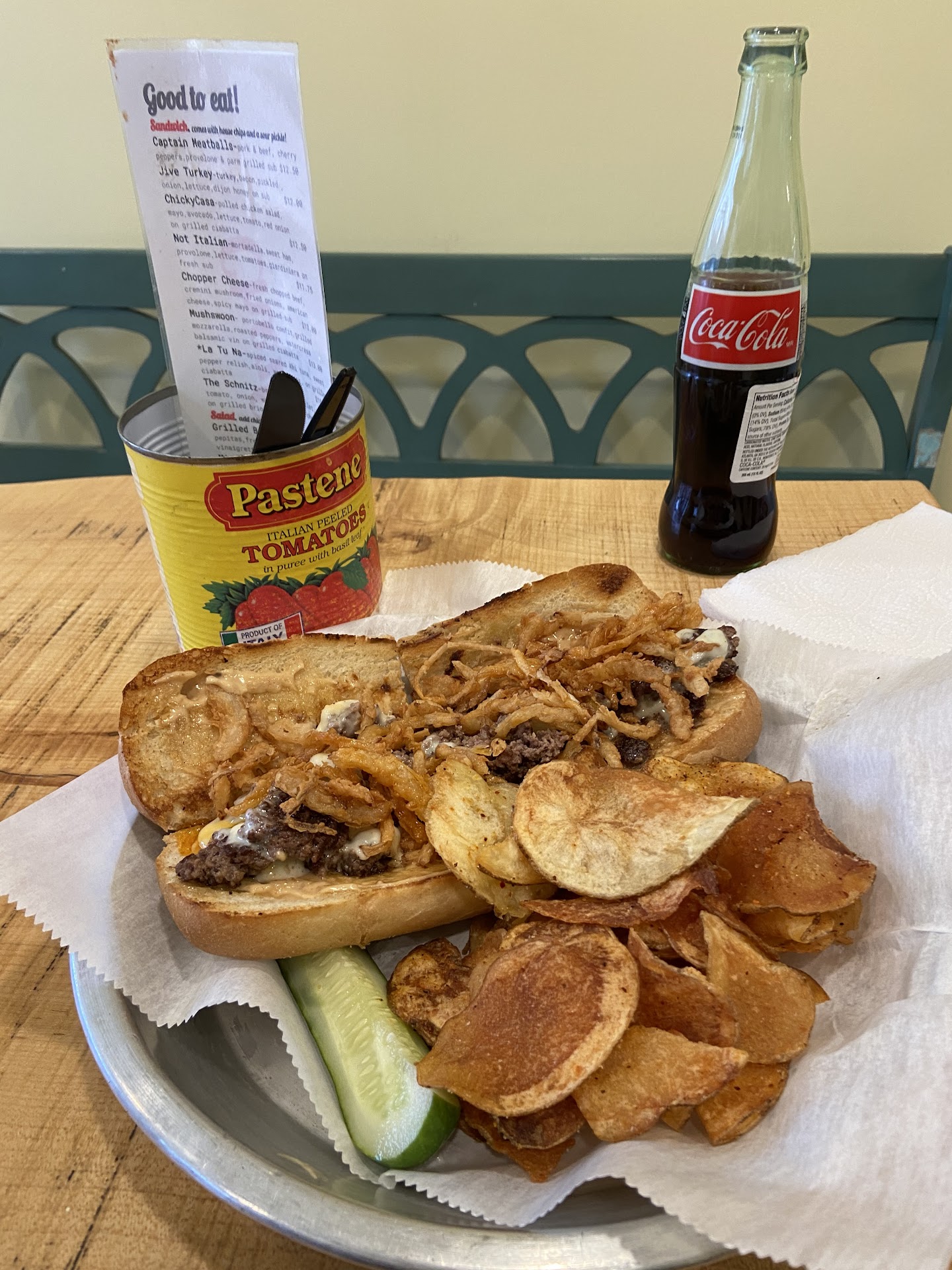 Super nice dude, clearly very passionate about food as it comes through in the flavors. I got a chopper cheese and dined in, house chips and pickle were a pleasant surprise, perfectly toasted fresh bun and well balanced sandwich with just the right amounts of beef, cheese, mushrooms, onion strings and spicy Mayo. I will definitely be back to try the empanadas!