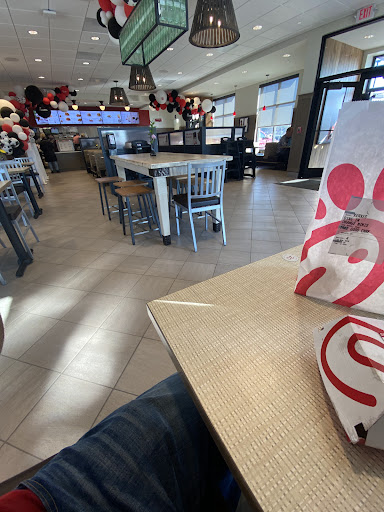As a first time visitor to any Chick-fil-A, I was overwhelmingly impressed by the atmosphere, cleanliness, and overall efficiency of such a busy restaurant. Tables were full of happy people enjoying their meals and yet there were only one or two people actually waiting on lines when ordering. The service was unbelievably quick, so lines never built up! The service at the drive-thru window was a lesson for all other restaurants. They would have eight cars at a time being taken care of and orders going out the door every couple of seconds. If this was any of the other big three drive-thru chains, that sort of volume would have created a line around the block. But the people at Chick-fil-A handled it without a problem. I think part of the reason that the store is so efficient and effective, is that they have enough employees there. Unlike some of these places that tried to get by with only three people.... the manager, the cook, and the counter girl ~ but here at Chick-fil-A, I had trouble Counting the amount of people they had all at one time working in that restaurant. Even though the food was going out at a fast pace , I truly give them the category listing of "Restaurant"... and not just "fast food joint".