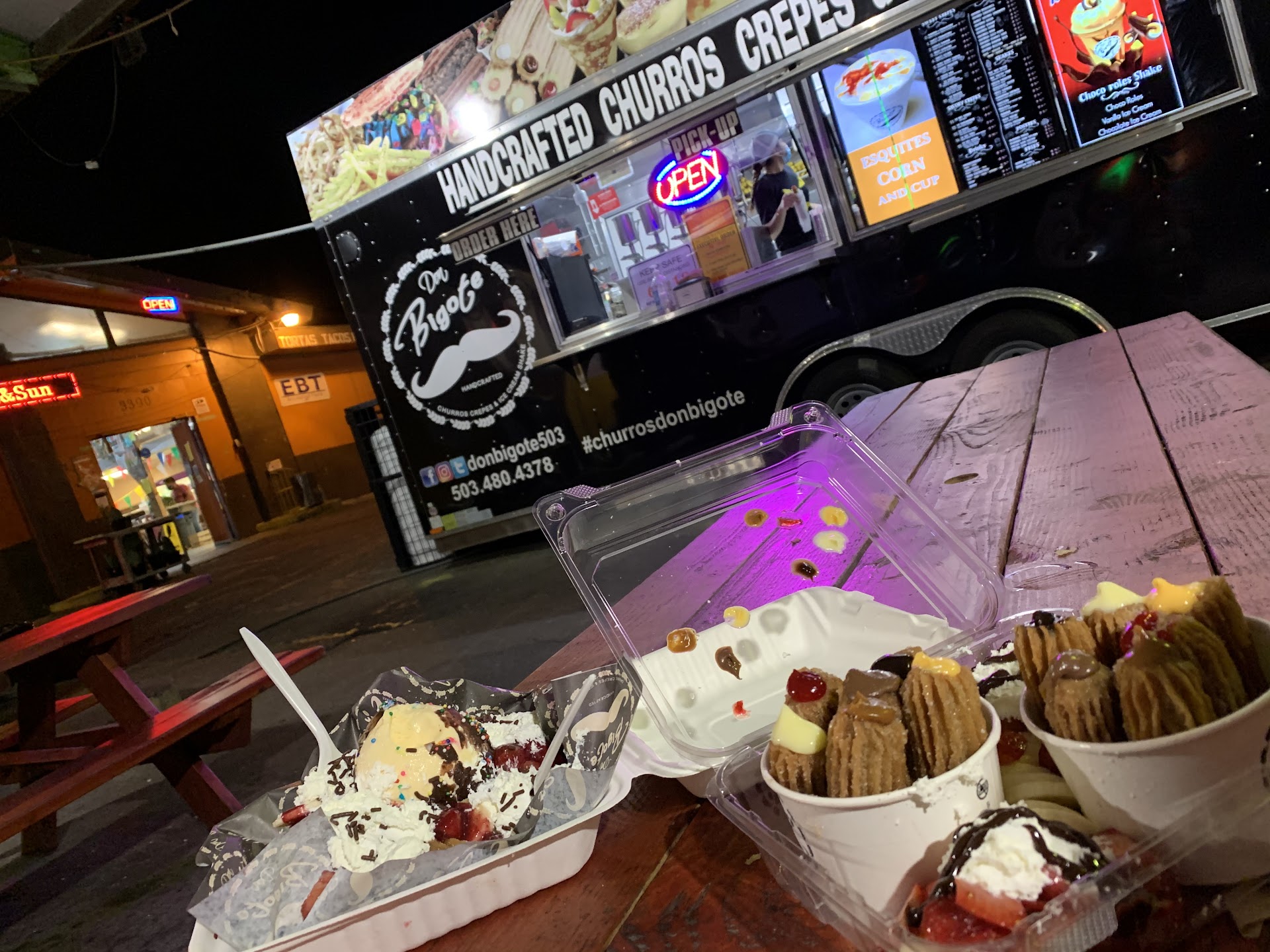 Read moreThis is 3 food trailers across the street from Goodwill on Portland Rd. in Salem. One has your usual Mexican fare and excellent cheeseburgers. Another specializes in Birria. And the other has real ice cream shakes, crepes, and churros. I forgot one, there is also a bar/tavern trailer but was not open last time we were there. This is pretty good food. My wife raved about her cheeseburger. There is loosely covered open air seating available. We've been here a couple times just for me. I'm the lover of Mexican food. Now she knows about the Cheeseburgers. This is completely to my benefit. Mostly Mexican eating here which is a good sign of good Mexican food. Around Portland Rd.?...