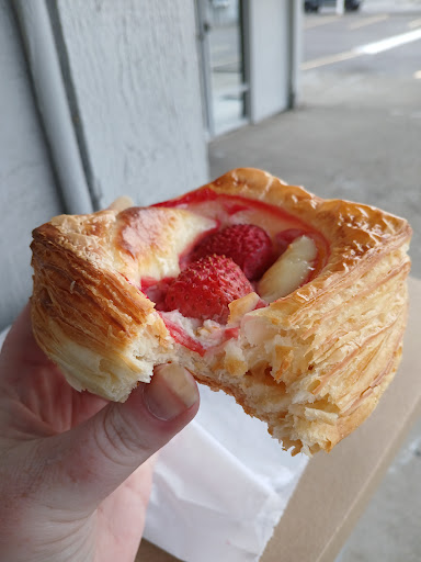 Been waiting a few weeks to try this place after seeing the photos and reviews here on google. I'm happy to report that it 1 million percent lives up to all of the hype! As I walked in I was welcomed by a warm wave of sweetness and bready fragrance washing over me, which got my salivary glands working overtime. Temptation rose even further as I gazed at the beautiful confections behind the glass to make the difficult choice on which I would be taking with me, and which ones I'd just have to try next time. I wish I had had the budget for a whole dozen to try the ample variety of flavors and pastries offered, but happily settled for the half dozen donuts and a strawberry cream Danish. However, the smaller number of treats, and the slightly higher than average price tag, won't be any issue because these bad boys are MASSIVE and more than make up for the extra pocket change. The lovely young woman who helped me was as sweet as their product, and my luck with lines held as I came in right before the rush began. Be sure to come early, as they do and will sell out, rightfully so. The strawberry Danish was probably the best I've ever had in my life, and I'm someone who doesn't mess around with baked goods. I used to frequent one of Portland's most beloved French bakeries, St.Honore, multiple times per week when I still lived in the Metro area. The Dough Hook blows them out of the water. I could barely get my mouth open wide enough to bite into the crispy, pillowy, buttery, flaky pastry, but delighted to find that once I had, an intensely rich, yet perfectly balanced flavor with just a kiss of sweetness filled my pallette. The filling was fresh, creamy, not overly sweet and silky, made with love and fresh eggs and none of those additives that leave that nasty, filmy mouth feel behind. The strawberries were super fresh and juicy, even after they'd been baked, which belies an attention and dedication to quality of ingredients. This was one of those pastries that has one wishing they could rewind tine to try it again for the first time over and over. The doughnuts are heavenly. They share the subtle sweetness of the danish, which allows the flavors of each to really shine and keeps you going back for more, which is easy given their ginormousness. Perfectly balanced, these round representatives of divinity are totally lacking in any kind of greasiness, nor did they even flirt with dryness. My personal favorite was a tie between the Boston Cream and Creme Brulee, and both are a masterclass in filled confections. The Dough Hook is what a bakery should strive to be, in every way. The pastries are above and beyond, and the vibes are Immaculate. This is my new regular spot for sweet treats, and it should...