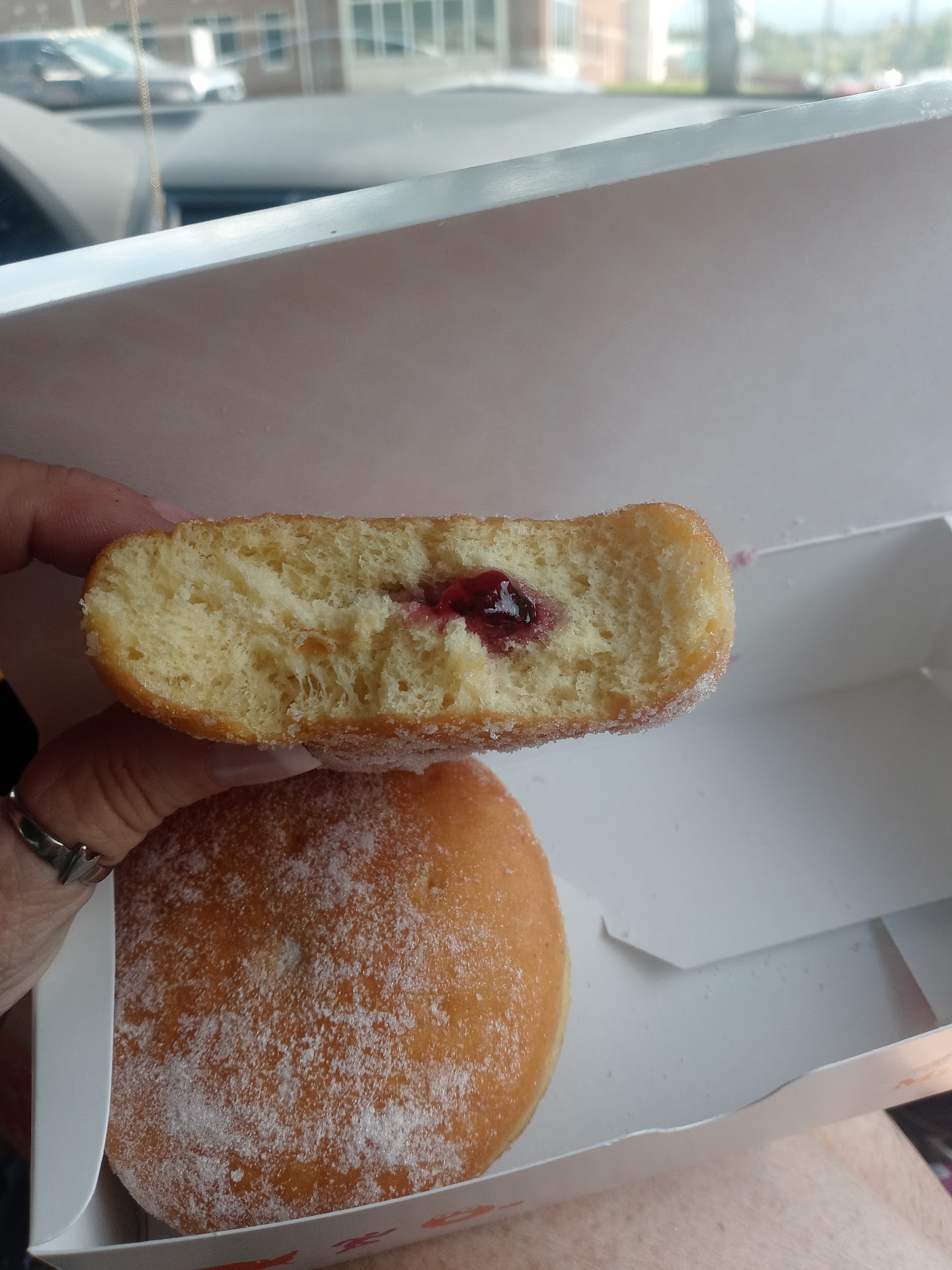 Read moreI rarely complain about any food service because I've worked for different restaurants for nearly 5 years so I know how it can go. But with a simple job: grabbing donuts and mixing coffee, I think it's difficult to mess up. I guess I was wrong. Went through the drive thru and gave her my order. When I got to the window she asked for my order again. I guess she couldn't hear me... Fine. It then takes over 5 minutes to grab a chocolate donut, a vanilla donut, and to mix an iced latte. On my way back out to 81 I try the latte: it's about 90% milk with just a splash of coffee. After two sips there was no coffee left. Then I grab the donuts. The chocolate one is good (only reason I'm leaving two stars.) Then I grab what I expect to be a vanilla donut... It's pink (strawberry.) Look, I know everyone has bad days, but after hearing my order twice and having a lot of time in between to "prepare" it, I expect it to be right. If you head to the counter or swing through the drive thru, check to see if your cashier has pink hair... Then double check your order...