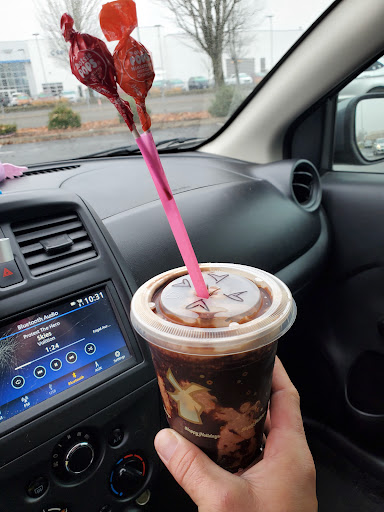Let’s list why this place is awful: There isn’t a menu to look at when you drive up. As a first time customer I had literally no way to make a decision or understand what they even sold. The promotional menu lists drinks but tells you nothing about them. The person who walks up to your window is also unable to provide you with an idea of what drinks they serve, as they’re running around non stop to quickly grab orders. After parking and WALKING UP to their counter there was also no true menu to look at. Once again it was a generic menu that tells you little to nothing about what they actually sell. It feels like the employees know about as little about what they sell as I did. There seems to be an insanely casual and mediocre sense of how they run the business, it bleeds into the entire customer experience. They run entirely off of brand recognition without any quality to any of it.
