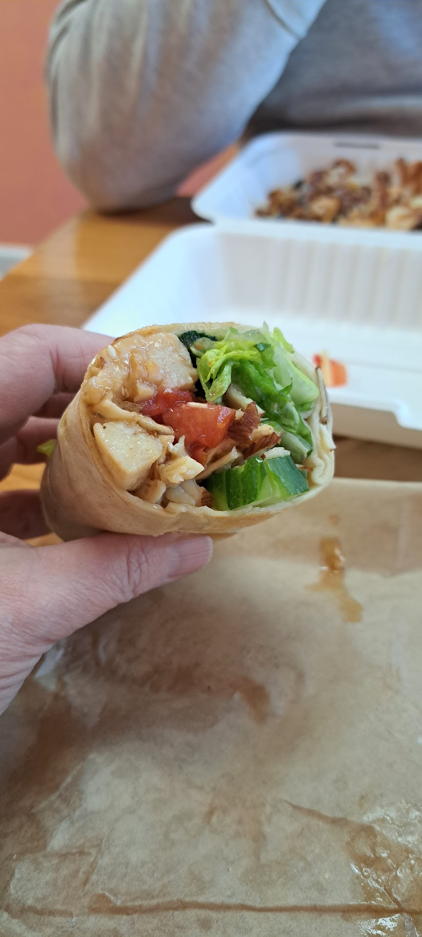My wrap was actually good and very fresh. I wouldnât mind trying other wraps here but again, because I am on a strict diet, I need to know the calories. Maybe itâs 400 calories and maybe itâs 800? There is no telling so I wouldnât recommend it as a regular spot for people on specialized diets.