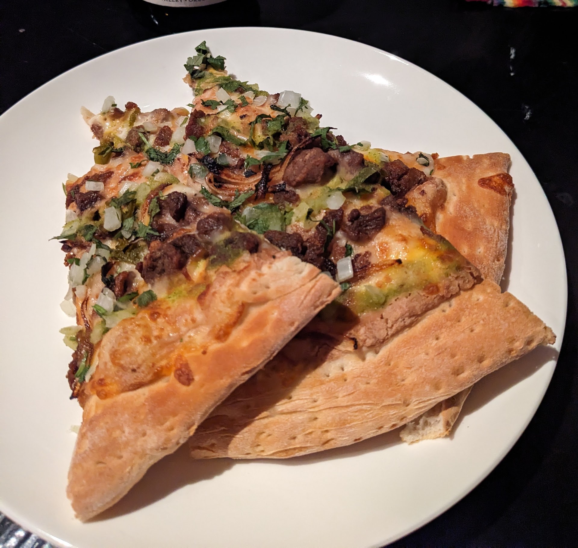 Carne asada, salsa verde and chorizo on pizza? Not gonna lie, it's kinda buckwild at first, but the taste will deliver you something fierce. It's traditional Mexican dishes that just so happen to be on dough and cheese, and they do it justice. Rich flavor and liberal toppings on every slice, and cooked just right. They also got this weird custom sauce that looks like fry sauce but tastes like a mixture of mayo and chipotle, and it works surprisingly well with the 'za. In short, riquísimo throughout.