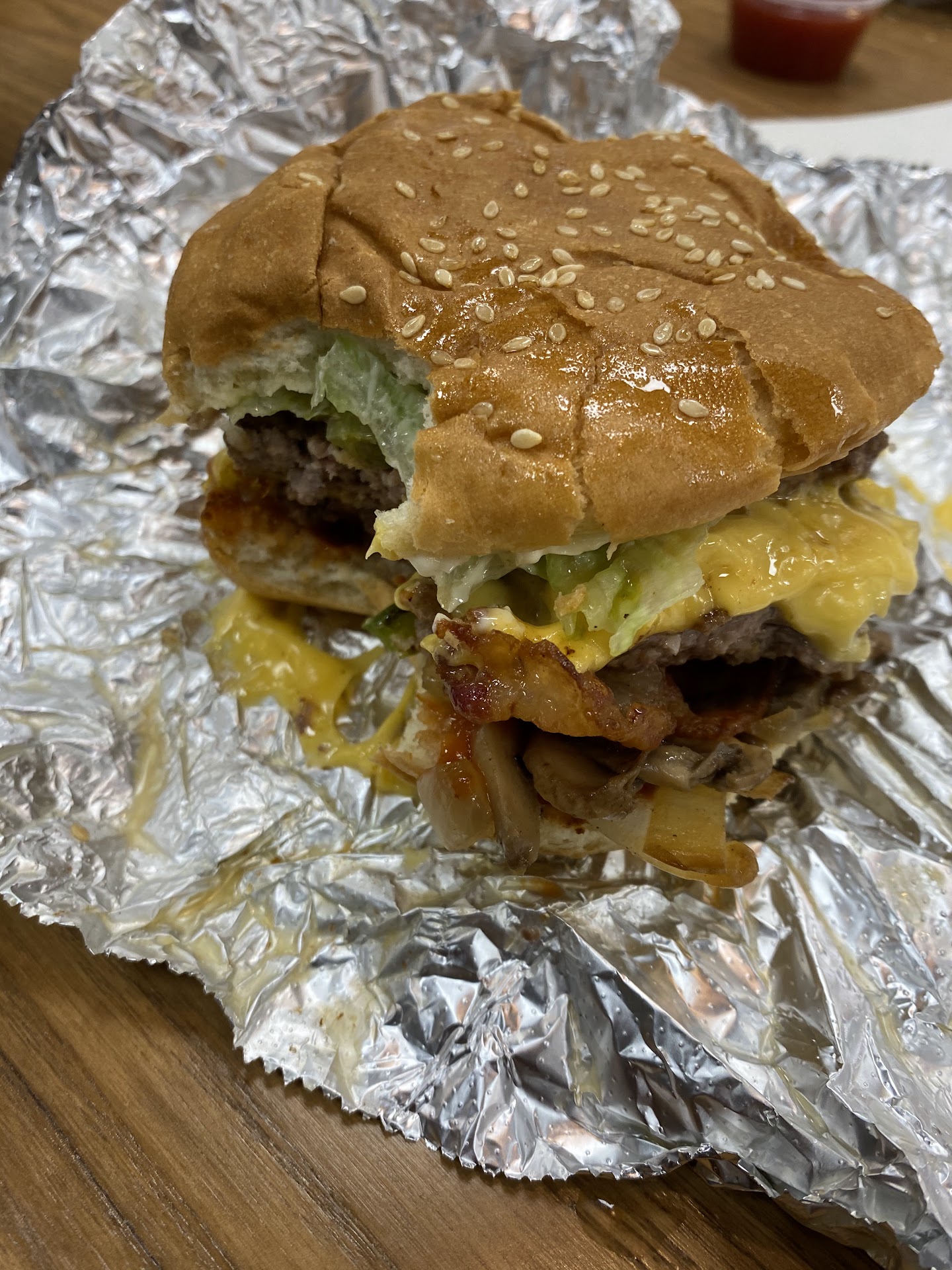 I've only had one other bad Five Guys experience. I waited at the register for about 15 minutes (maybe more) so that I can order. It was busy. There were 3 guys at the sandwich station, an experienced employee at the.register. she had to run back and forth, the guys at the sandwich station only stuck to what they were doing, I should mention one of them had his hands touching everything,wiping mayo off his fingers on a bin of pickles, couldn't flip the burgers and put the next order on the grill, the woman had to move around so that orders made it out. .I have nothing to complain about when it comes to her. So I ordered a couple shakes, a few burgers and a few fries. Two of the regular burgers were plain. Mine had extra extra bacon, onions, hot sauce, pickles. I got home and opened my burger, soggy galore .. I know five guys isn't cheap with an extra extra bacon order... I was shocked to find that I was given crumbs of bacon from the bottom of the bin. I know it wasn't the woman who did that because I observed her make 4 or 6 burgers at the same time and they were perfect. I couldn't even eat my food.. it was all around horrible. Hope I can get in touch with...