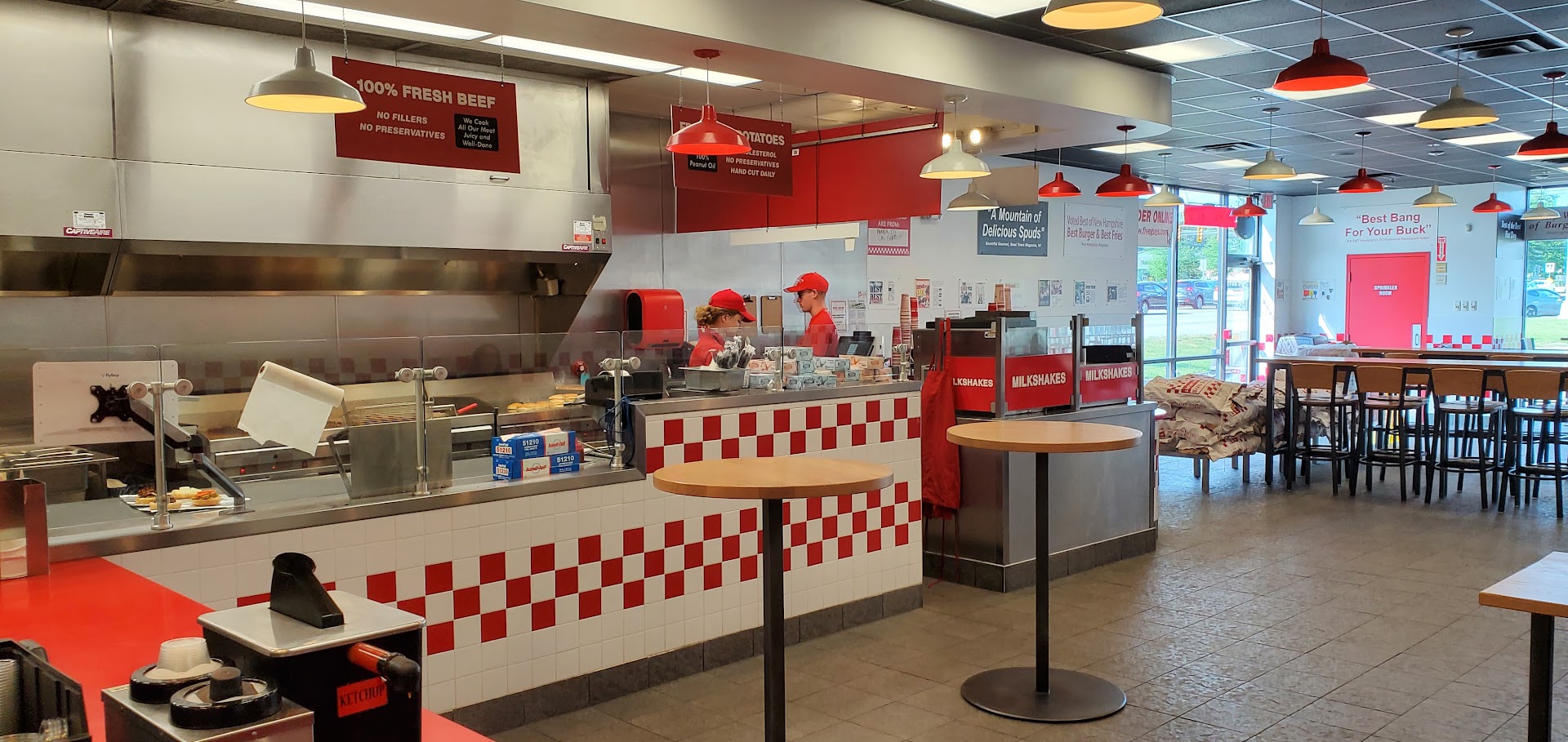 Read moreI love five guys to get some fast and easy food, but this was by fr the dirtiest location I have ever been to, we noticed it right when we walked inside, dirt all over the floor, we walked up to order and on the first look into the 'kitchen' (by the fryer and the stove) fries and all other kind of dirt on the floor. We were hungry so still ordered, as we got our receipt, we walked to get our drink and it did not get better, in front of the soda machine spilled fries, pickles and ketchup on the floor. Non of the tables were clean to sit down and eat, once we got a table cleaned and got our food we noticed the the foil that the burgers are wrapped in were absolutely disgusting and dirty. The floor was not just dirty but it looked like they must have spilled some fryer oil the floor was slippery and gross to walk on. I don't believe that that was all from one day this location was not cleaned proper in days.