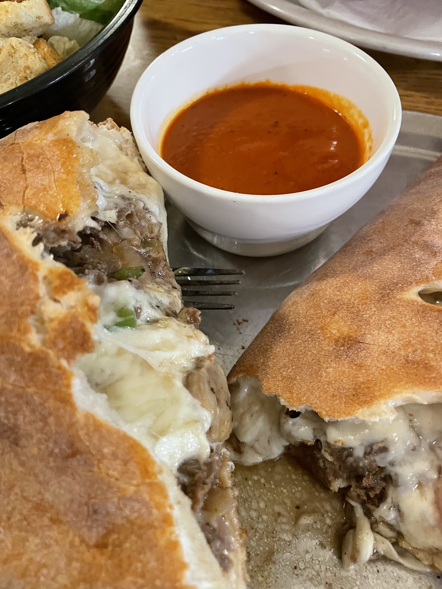 Read moreA meal here this evening was somewhat unimpressive. Arriving just around 9pm, we waited briefly to be seated. The young man who seated us was friendly and brought our drinks (half price beer mugs on Saturday!), but apparently forgot us immediately after that. Several others entered, and were seated and placed orders before us. Eventually, we flagged down a waitress who apologized and took our order. Then, I flagged her again for a beer refill. I ordered a calzone, and my companion had a salad and soup. His order arrived nearly 20 minutes before mine. We werenât surprised that mine took longer to prep, since it is made to order, but the difference in service was noticeable. We had to flag the waitress again for a spoon and then she didnât appear again until she brought our check, without offering refills or dessert. We requested a drink refill, which was the last time anyone noticed us. Although the doors indicate the business is open until 11pm on Saturday, unfortunately, we were made to feel that we were inconveniencing the staff. The food was good, but the experience was not. They were stacking our chairs on the table before we exited...
