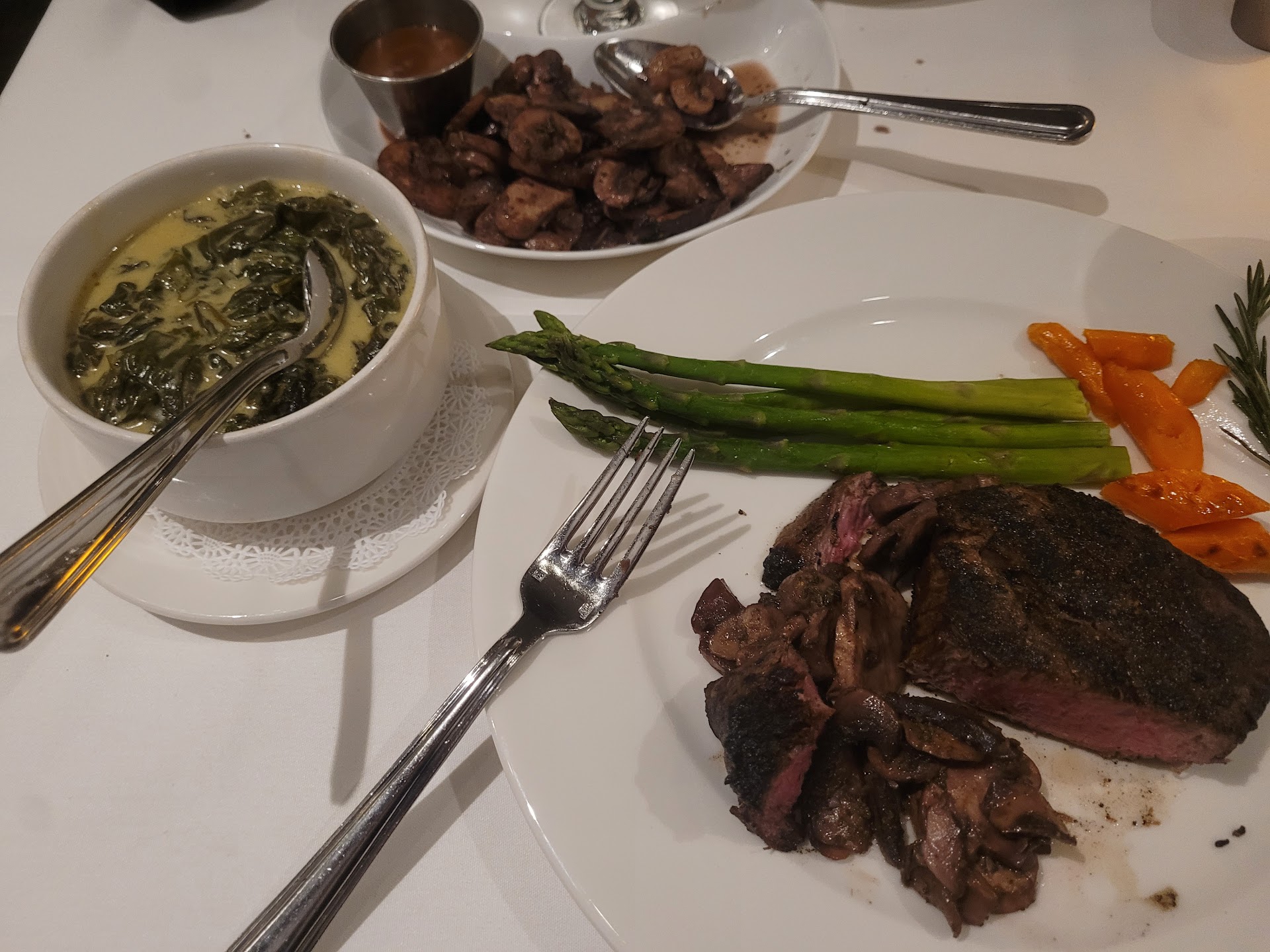 2 of 3 Steaks were undercooked. Our Carrots were not cooked enough and very crunchy. Creamed Spinach side was just never delivered.