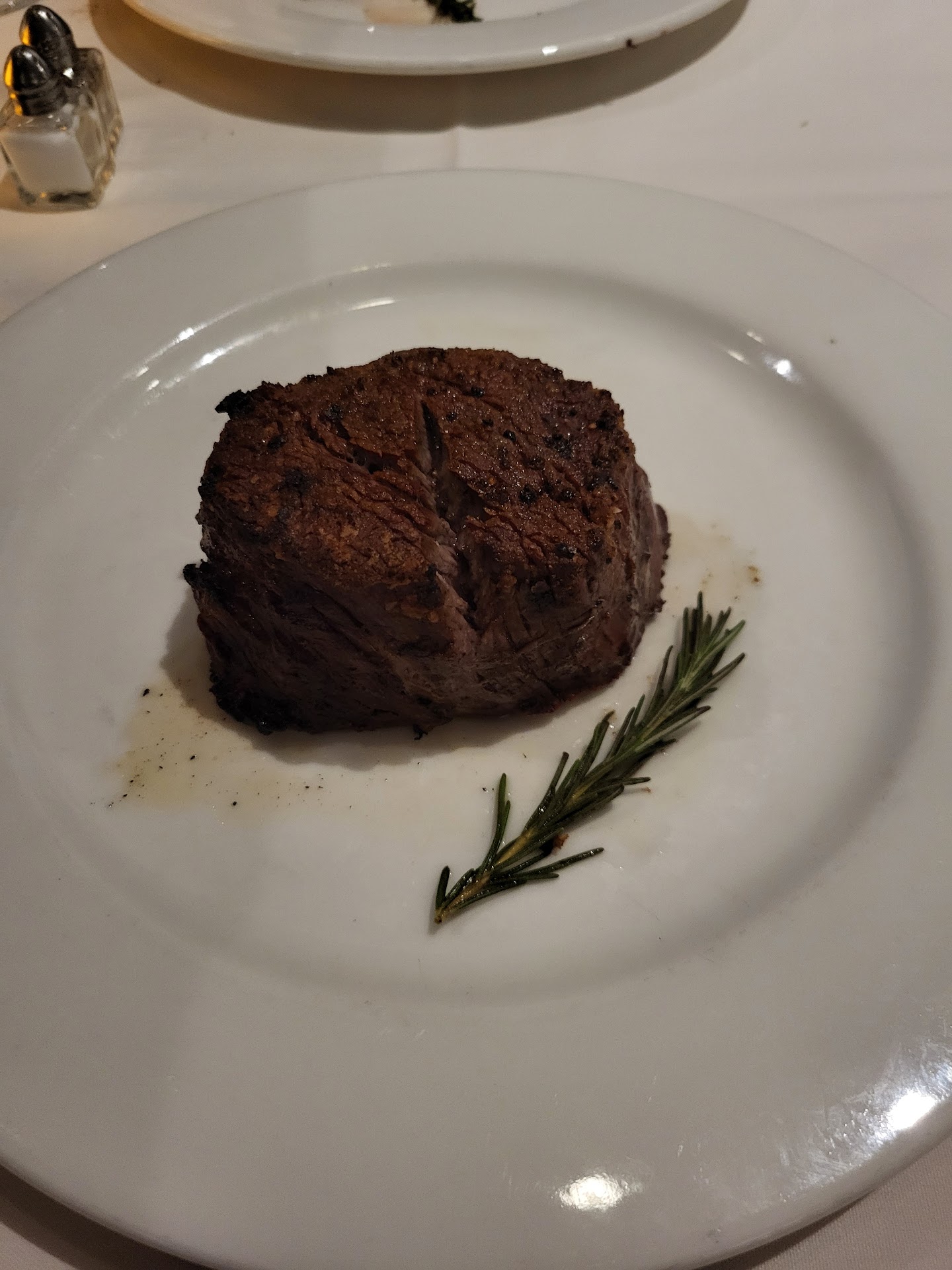 The environment was the same upscale décor as the location in Roanoke. However, the food was not what you would expect. I had surf and turf. The lobster arrived before the steak. When the steak arrived a few minutes later, it was not prepared as requested and had to be taken back. It took some 4-5 minutes for the steak to be cooked as ordered and returned. As you can guess by this time my Lobster had gotten cold.