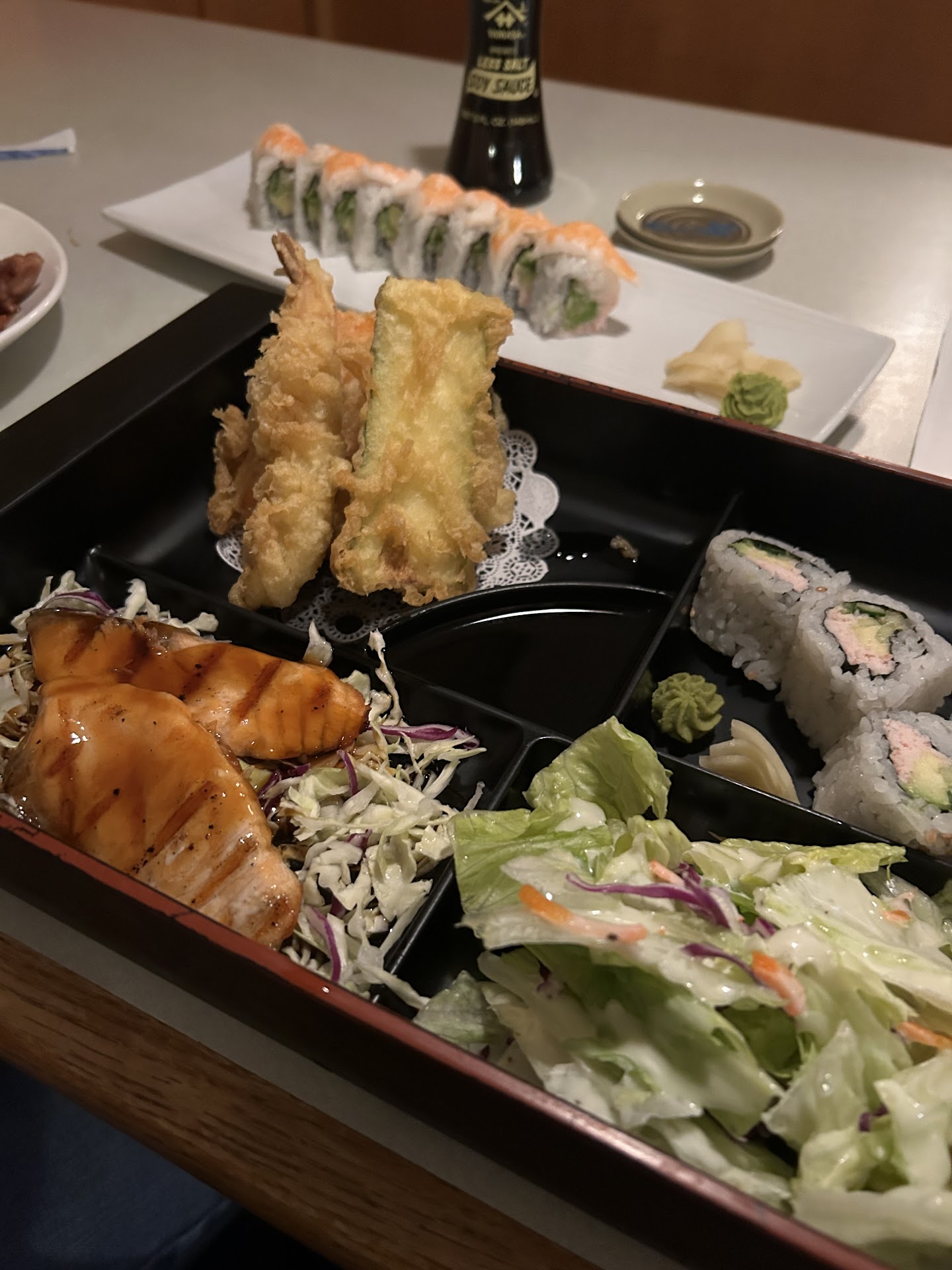 Read moreThe sushi is what I would have expected had I walked into a strip mall in Cleveland OH. Passable. Better than Safeway, not as good as Sushitown. Disappointed in portions - 4 pc rolls you pay 9 dollars for should be much better than this. Either that or more plentiful.